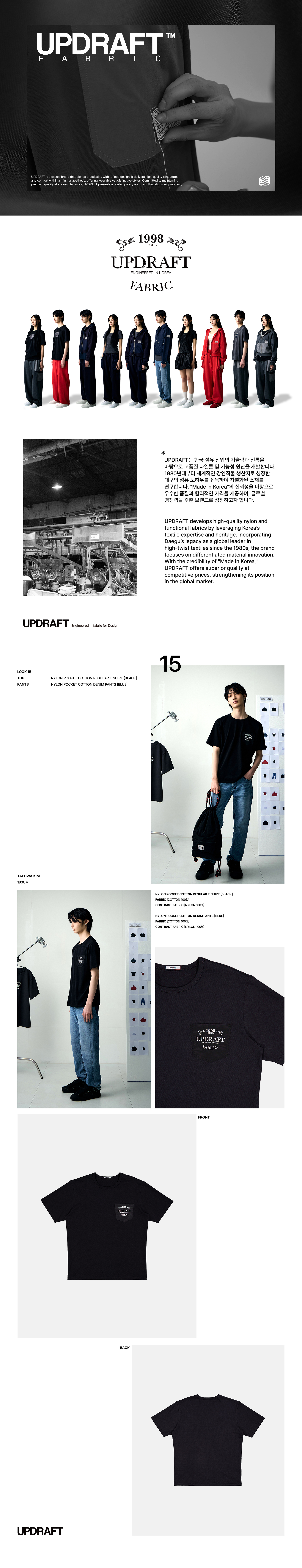 This T-shirt is made of Korean 20-count single cotton and provides a comfortable daily wear. It features a pocket made of high-density heavy twill nylon, and is characterized by a hybrid design that combines durability and functionality. A piece that adds a practical element to a casual style.