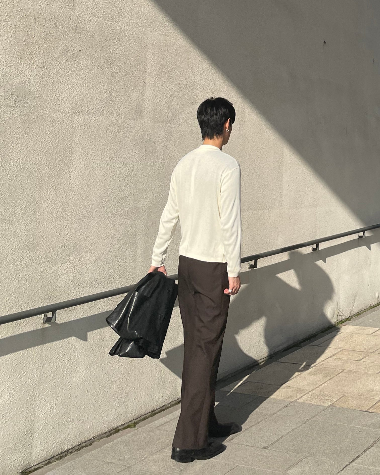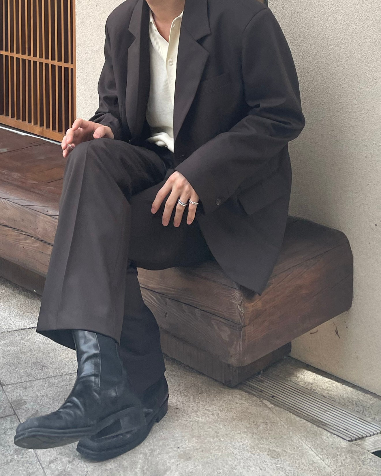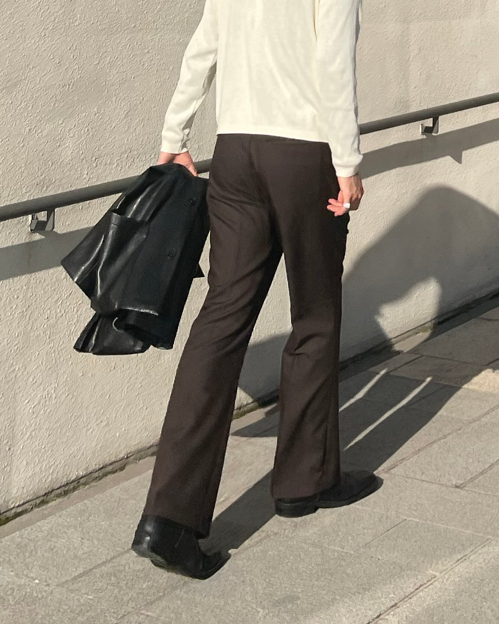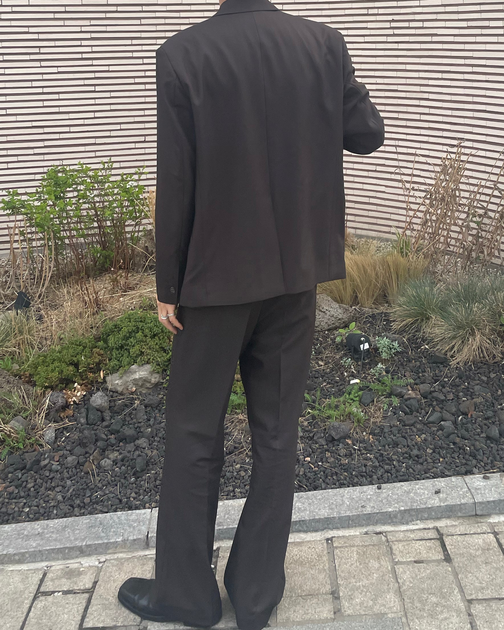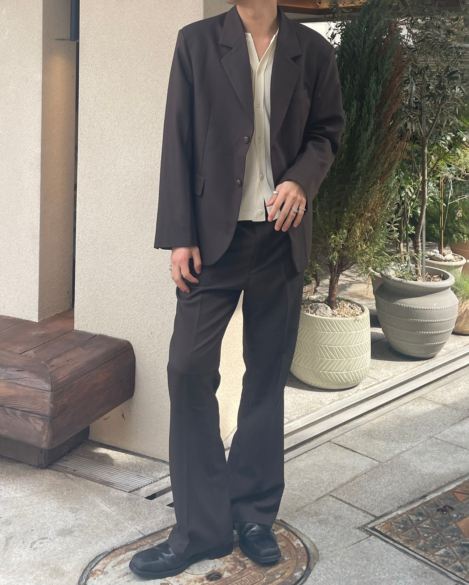 パンツはストレート〜ややセミワイドの中間設計で、足元にかけてナチュラルに落ちる設計。セットでも単品でも着回し力に優れた一着です。