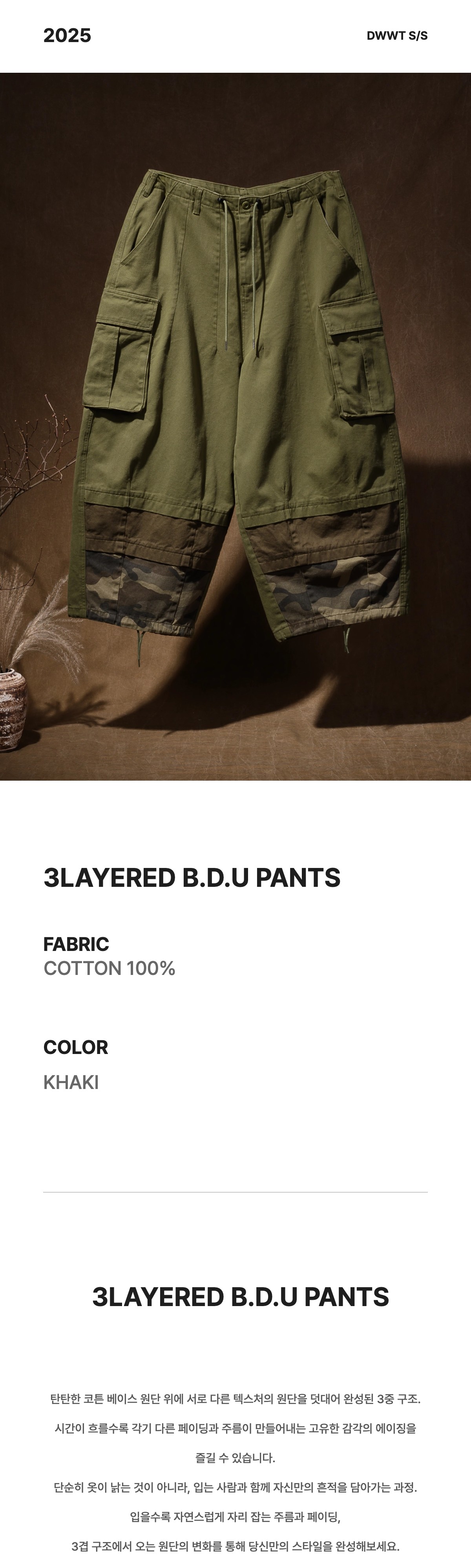 3LAYERED B.D.U PANTS -KHAKI