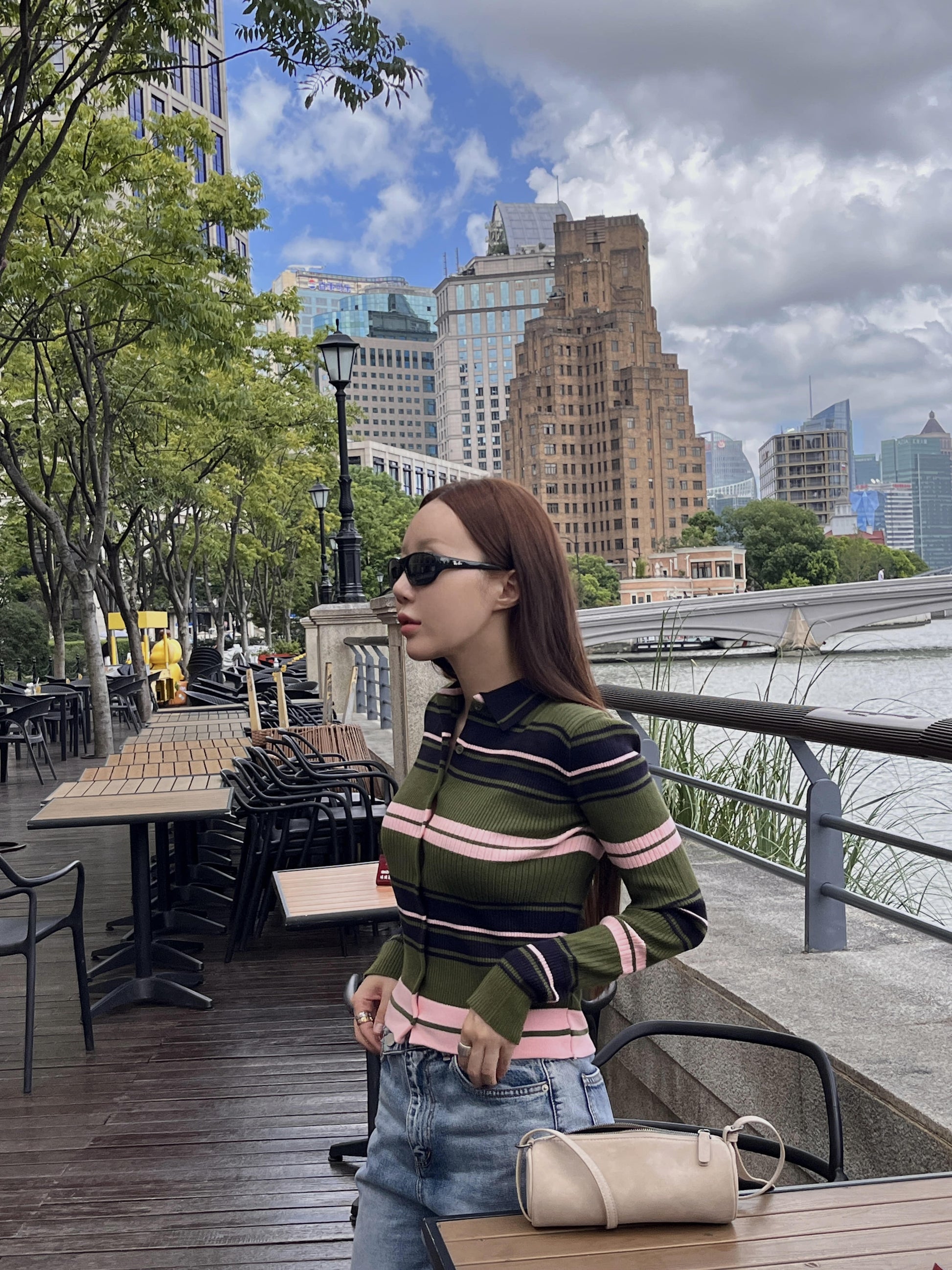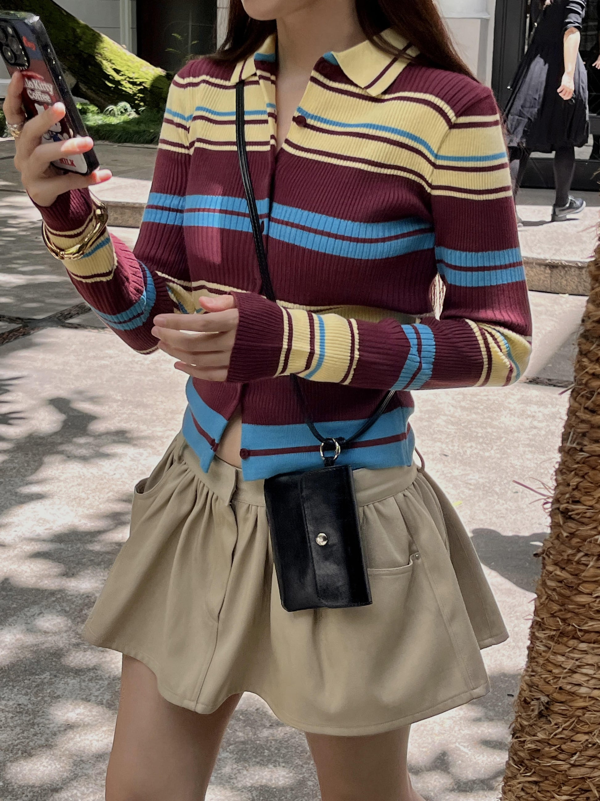 - 感覚的なカラーバリエーションで完成したボーダー柄カーディガンです