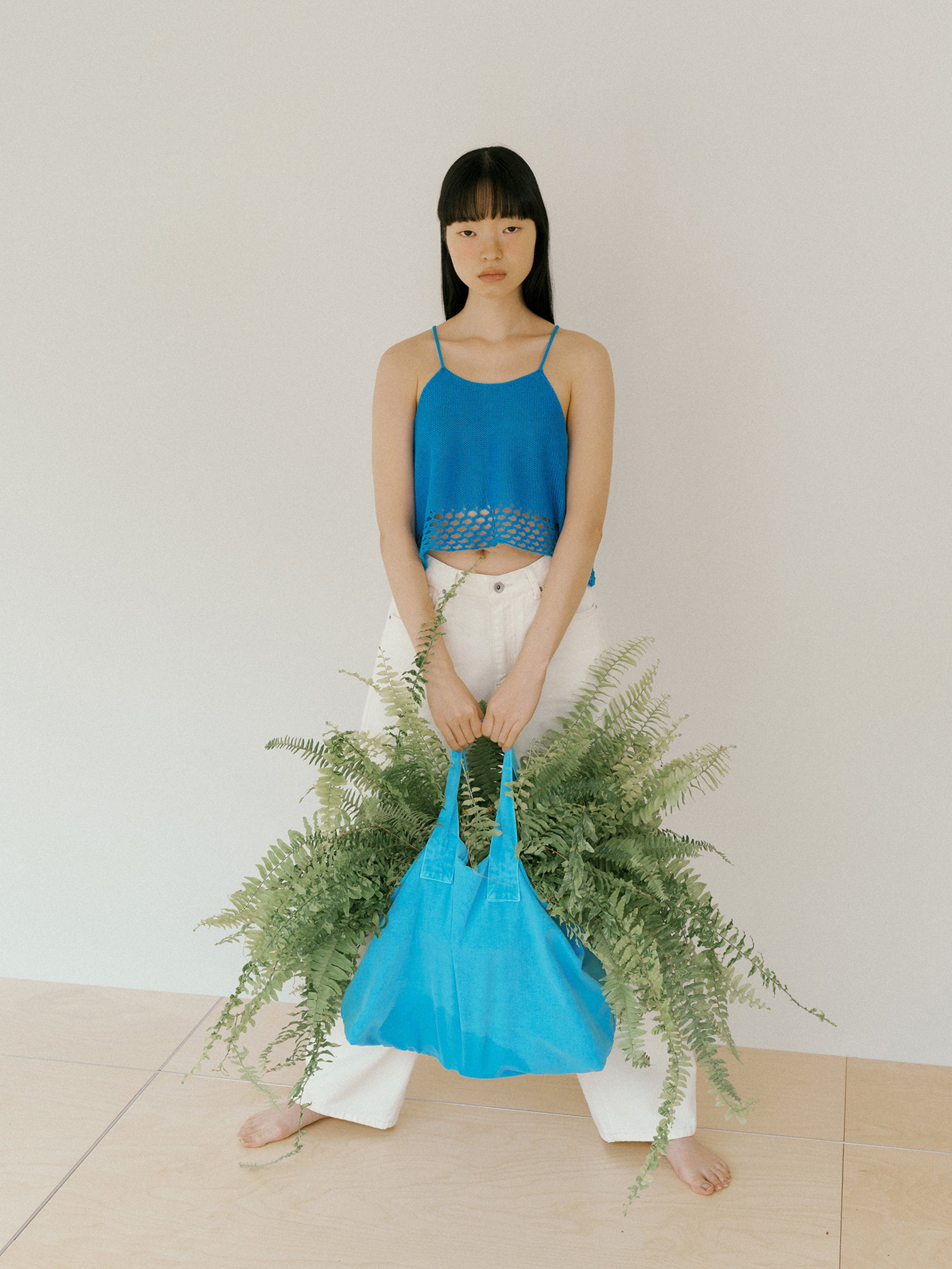 | 特徴 | リネンとコットン混紡の細糸で編み立てた軽やかなスリーブレス。 肩のストリングでサイズ調整が可能です。 |