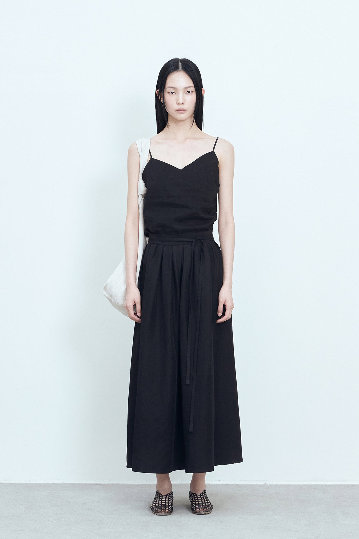 動きによって自然に広がるシルエットがフェミニンなムードを演出し、様々な上着とマッチするのに良いアイテムです。