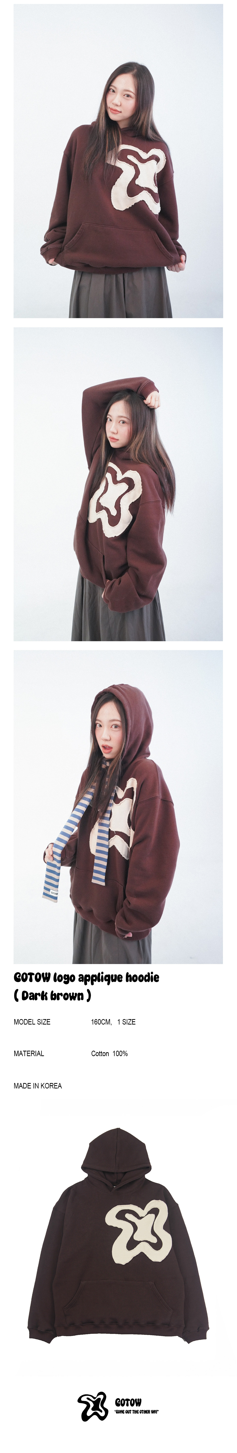 COTOW logo applique hoodie -BROWN