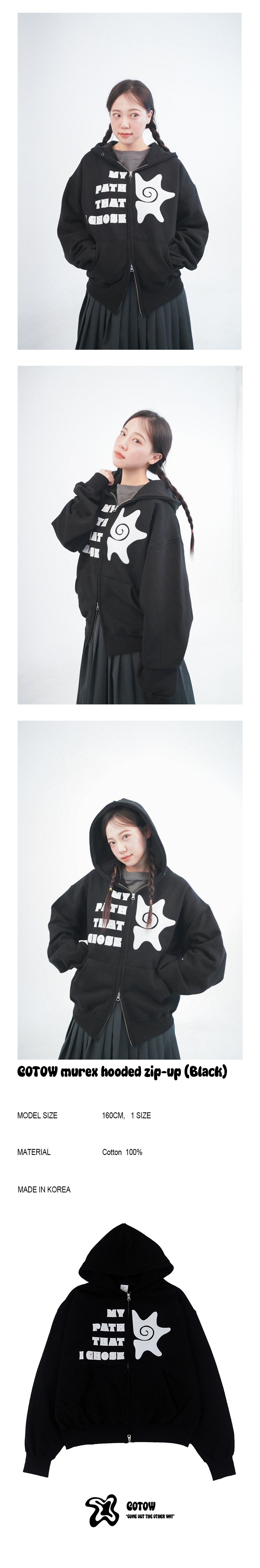 ブラックのボディに、フロントに大胆なホワイトプリントとメッセージが映えるジップアップフーディー。「MY PATH THAT CHOSE」というメッセージとユニークな星モチーフが、韓国ストリートらしいインパクトをプラスします。柔らかく厚みのあるコットン素材で、肌触りと防寒性を兼ね備えた一枚。デイリーコーデからカジュアルなお出かけまで幅広く活躍します。ゆったりとしたシルエットで、メンズ・レディース問わず着用可能です。