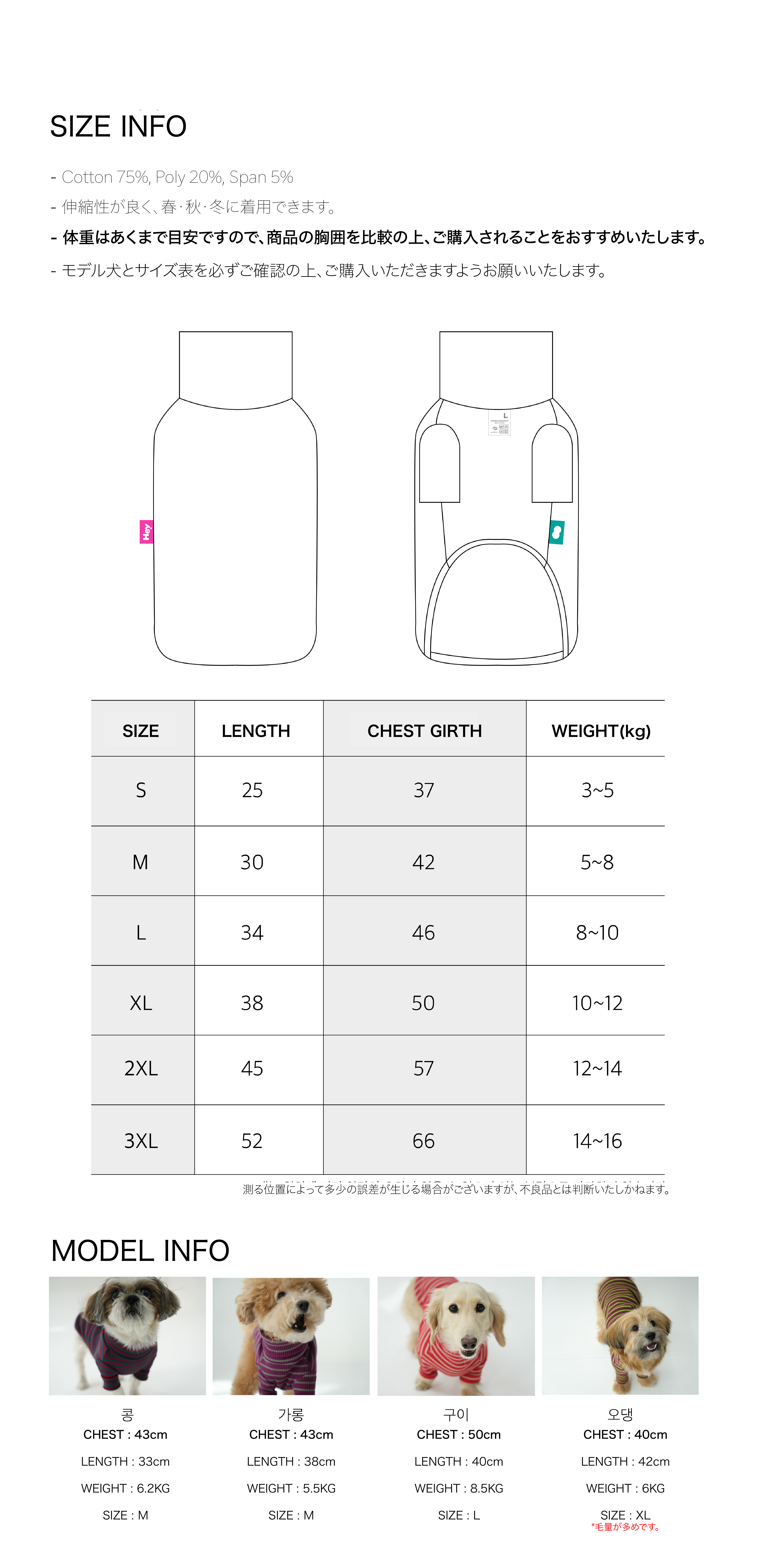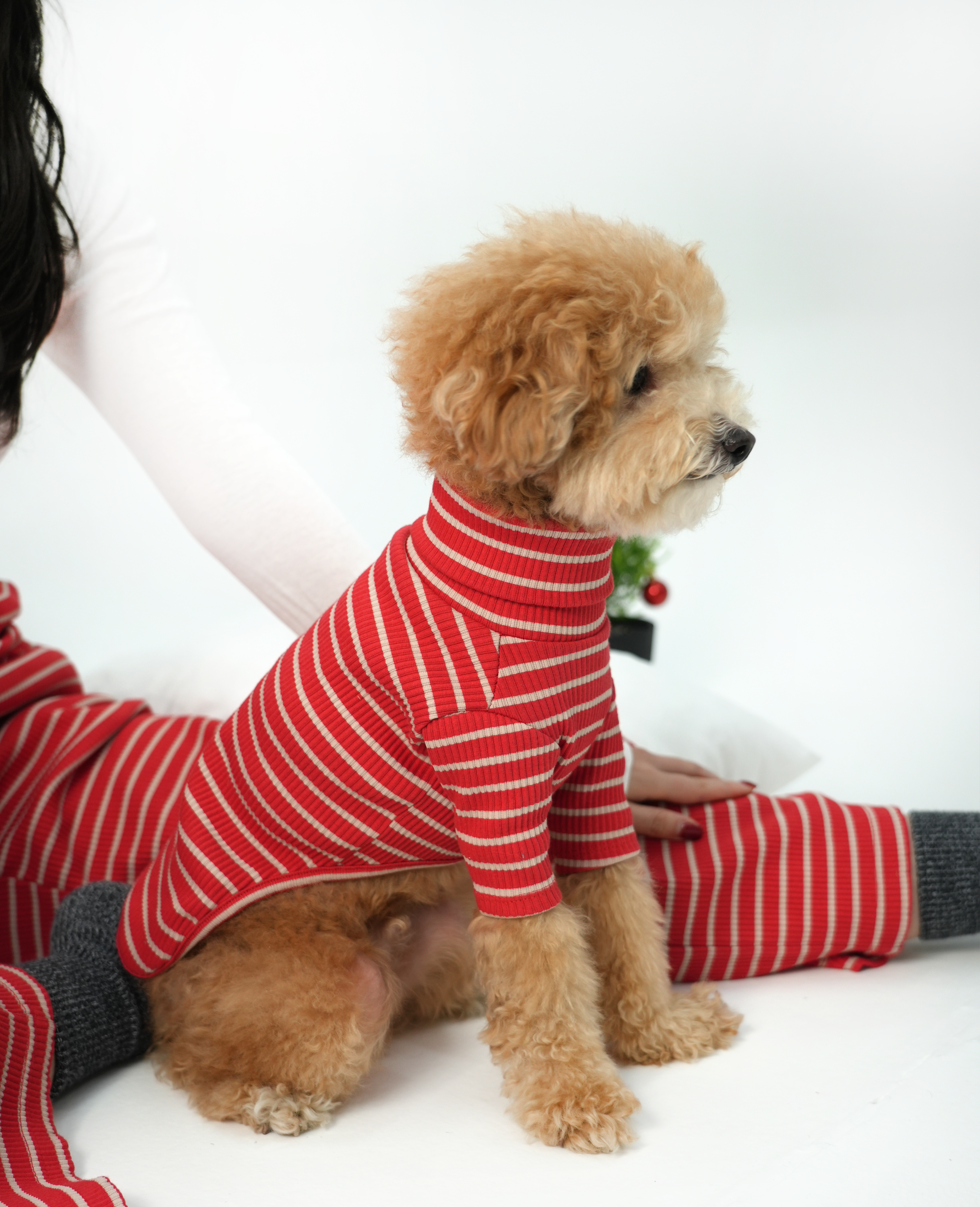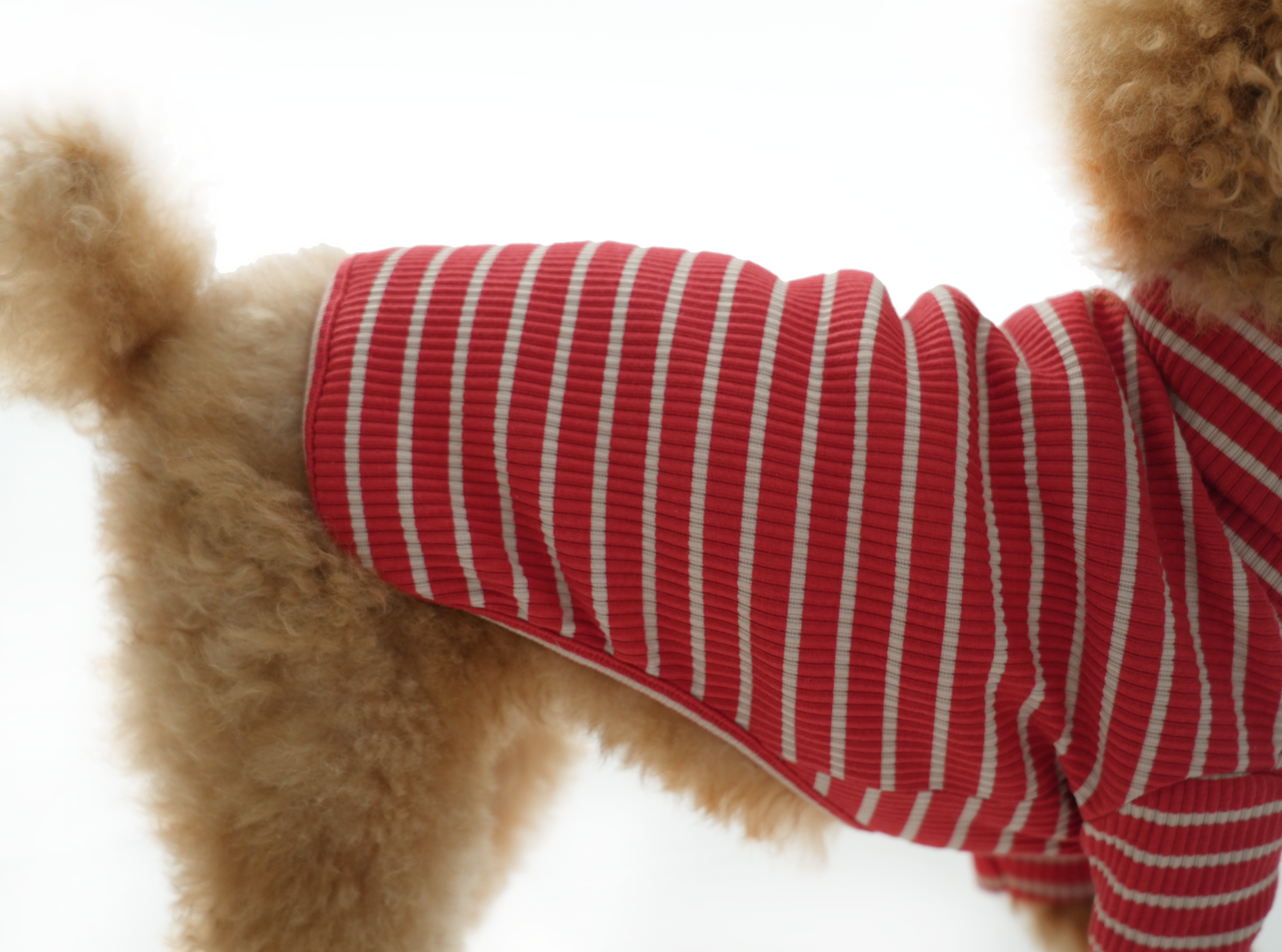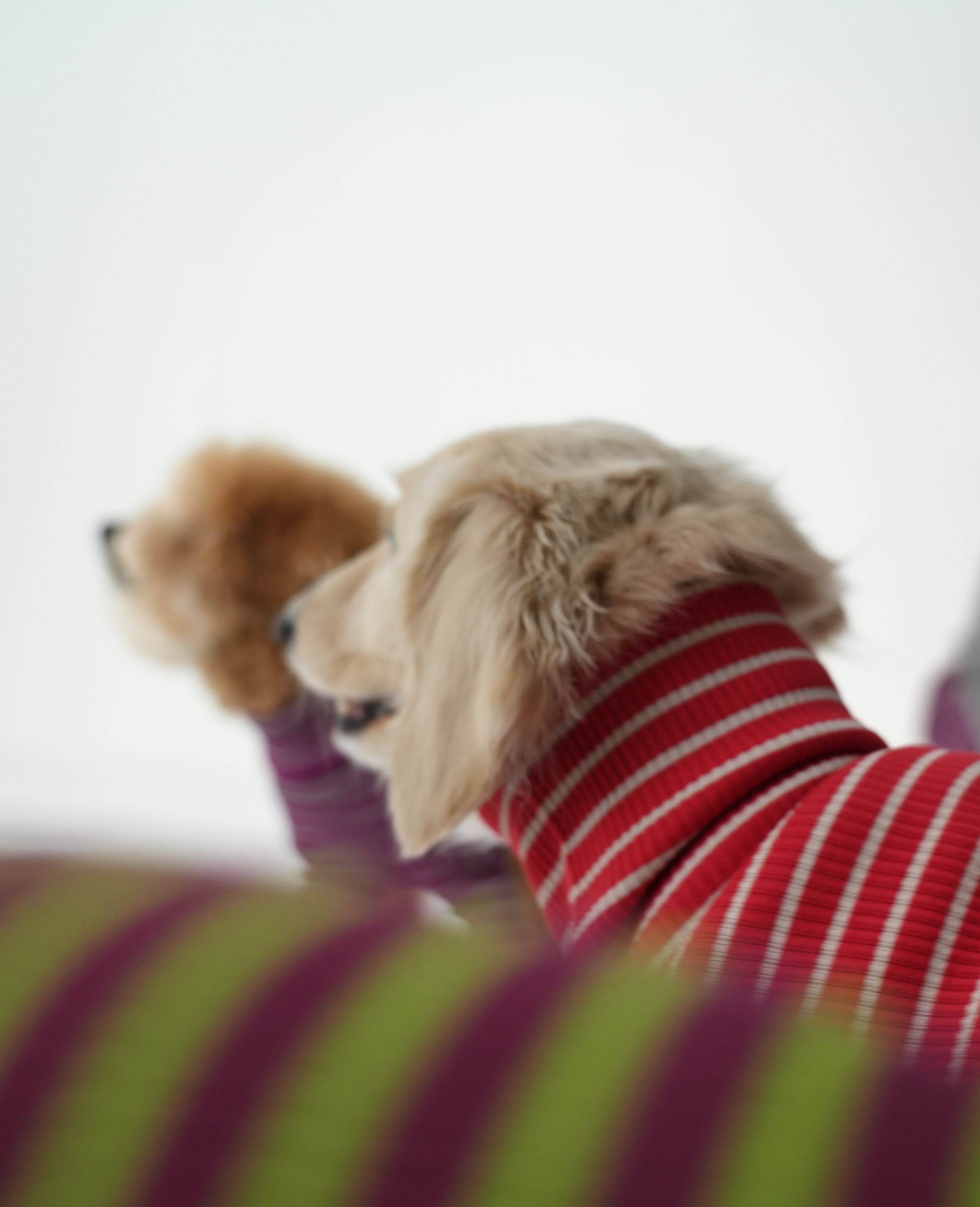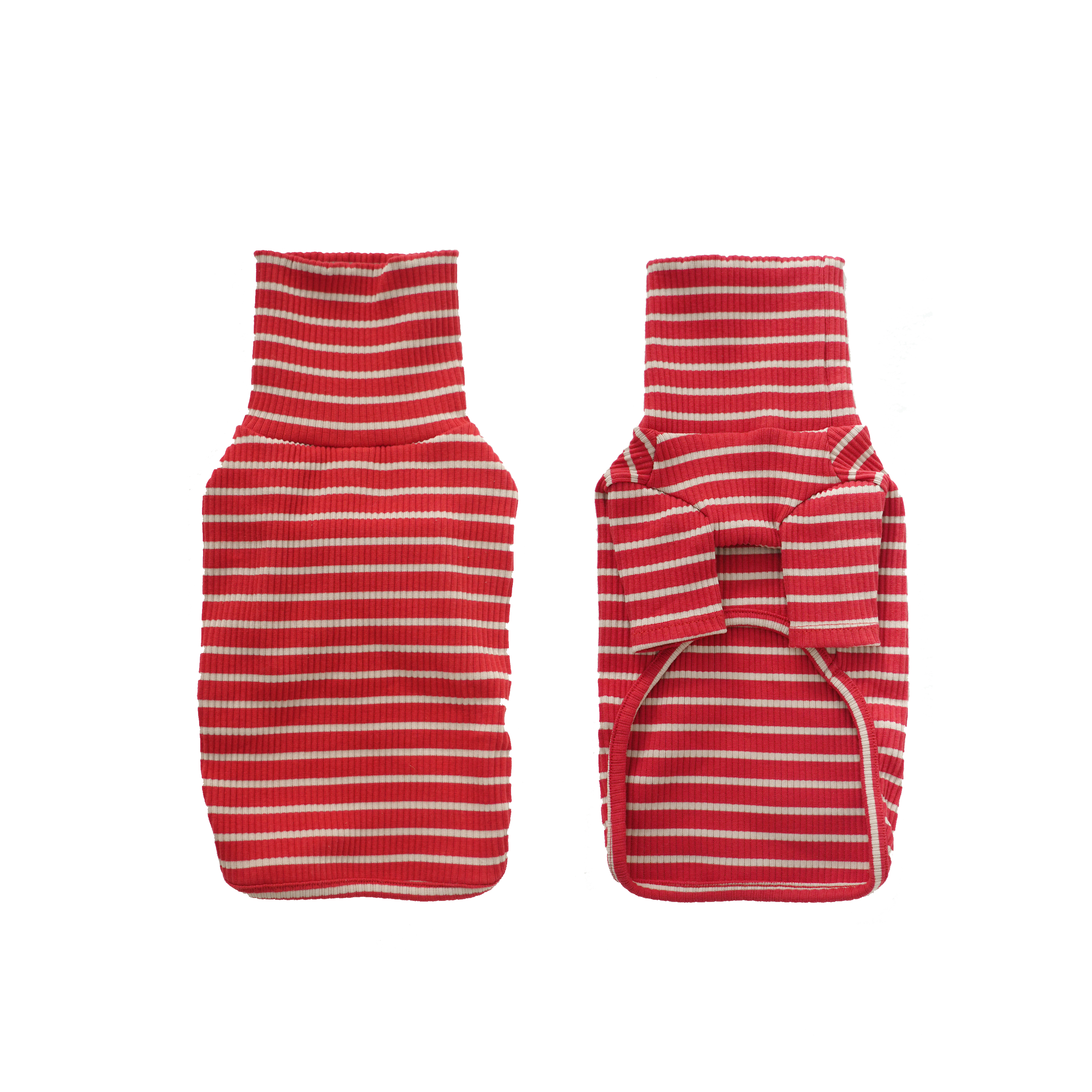 上品なストライプ柄が魅力のタートルネック。柔らかな素材で愛犬を優しく包み、秋冬の防寒にも◎。シンプルながら洗練されたデザインで、どんなお出かけコーデにも合わせやすい一枚。
