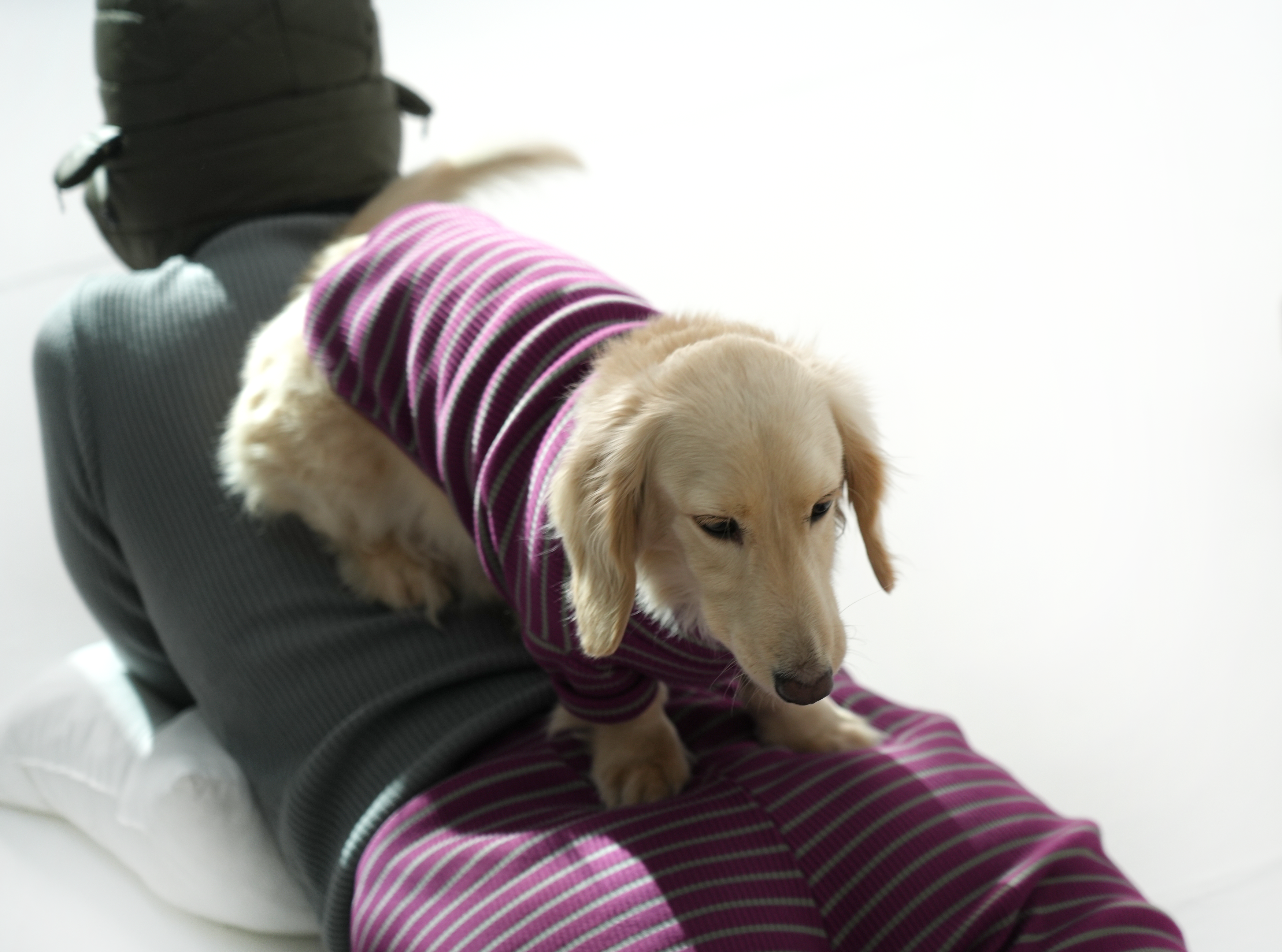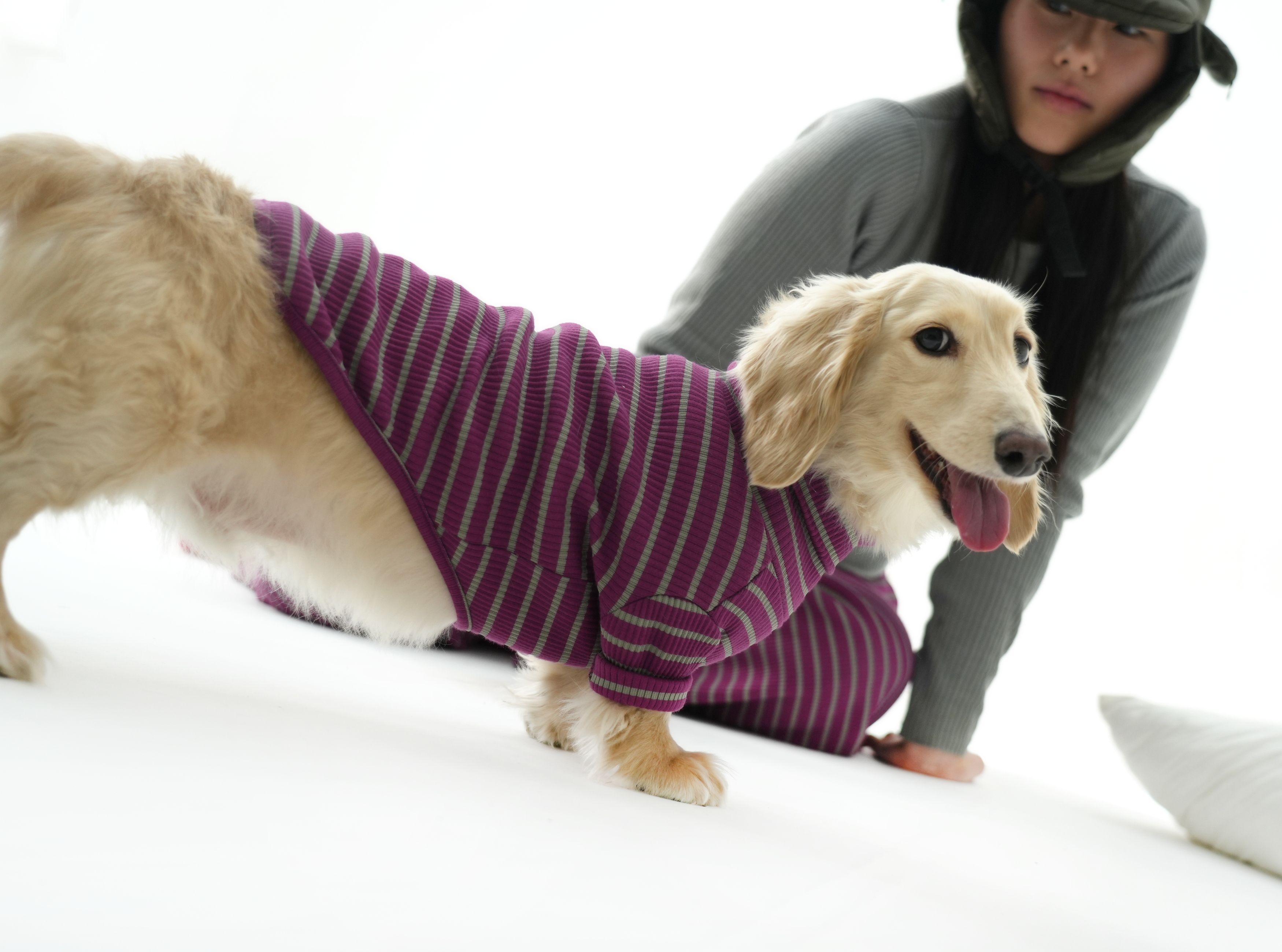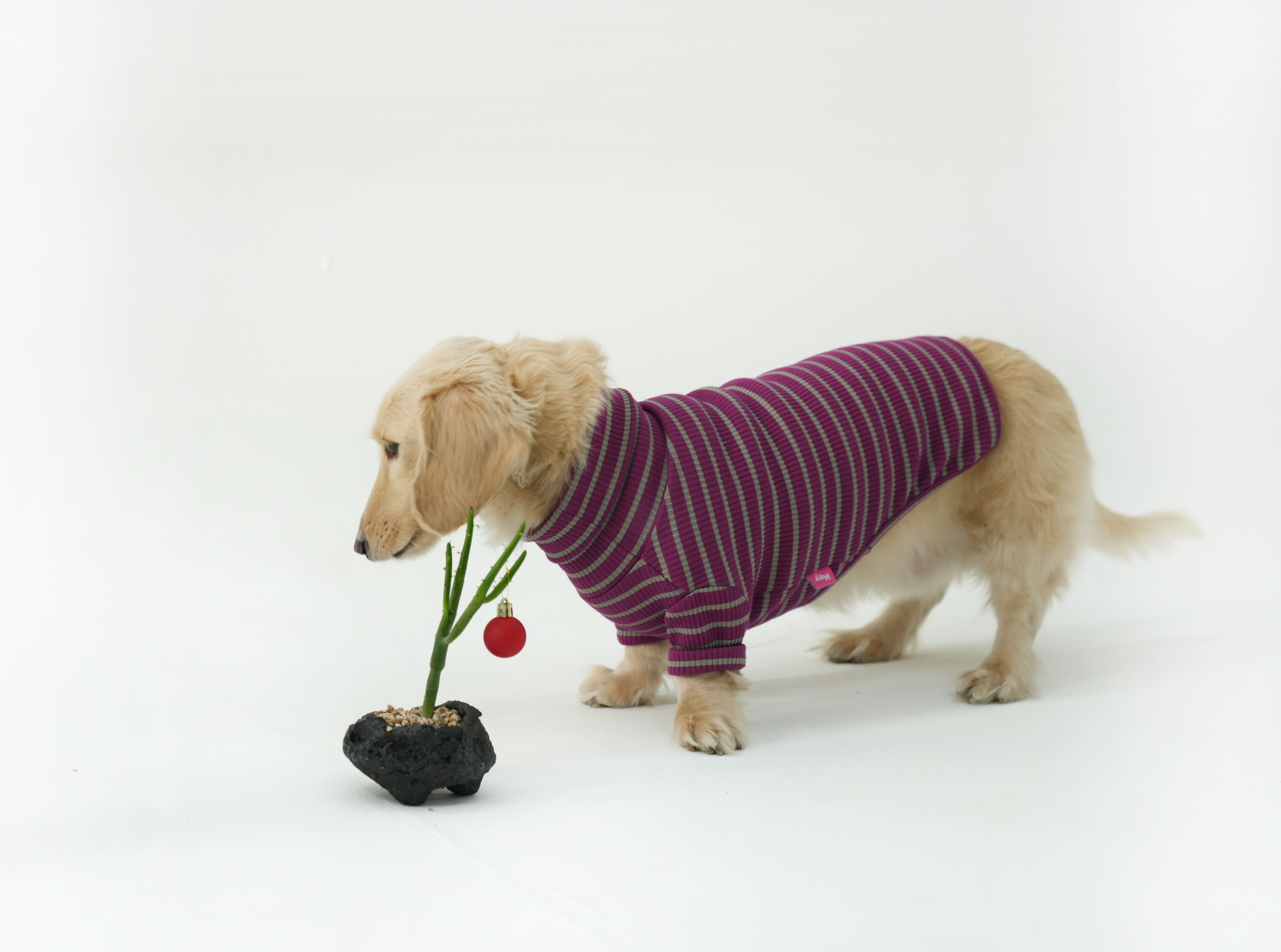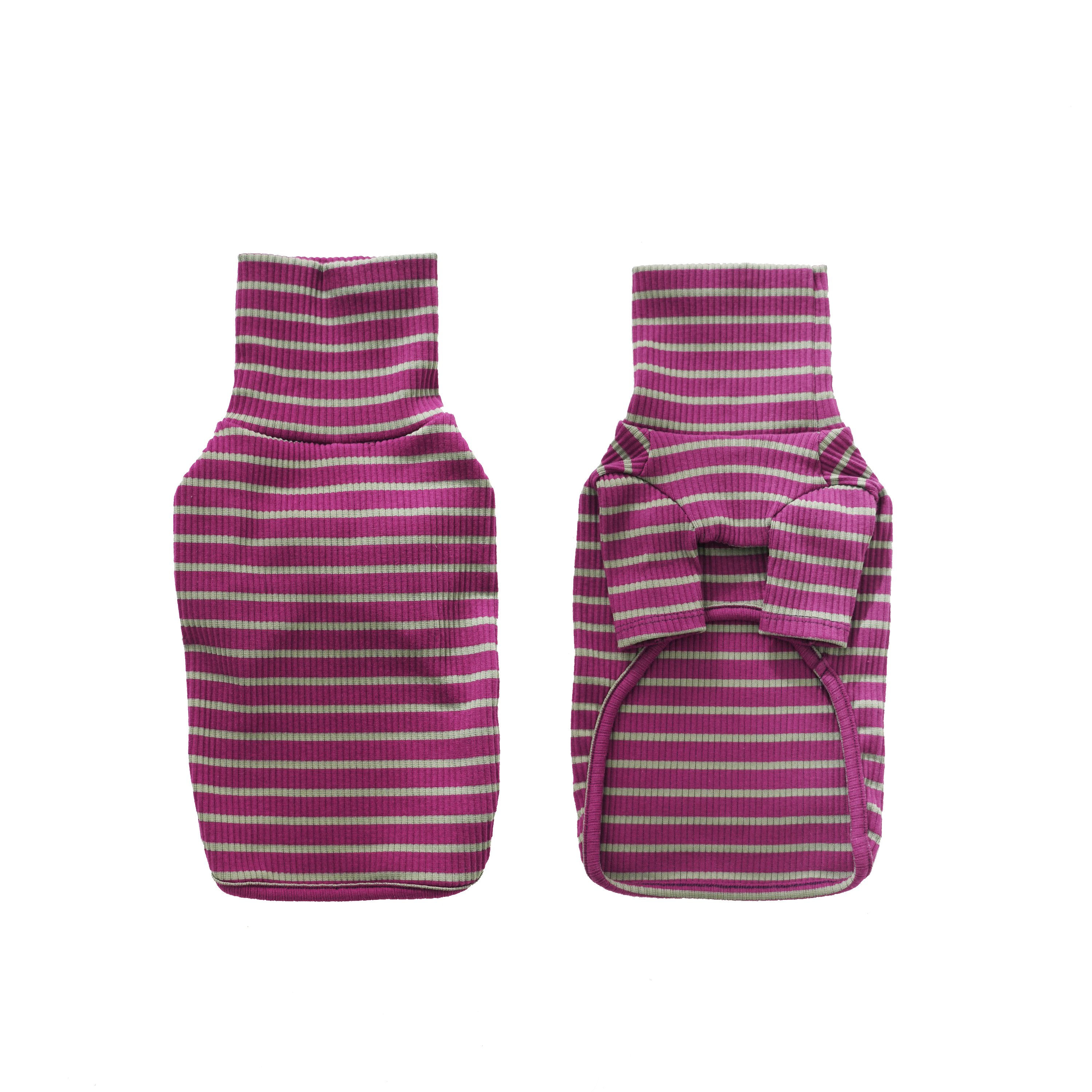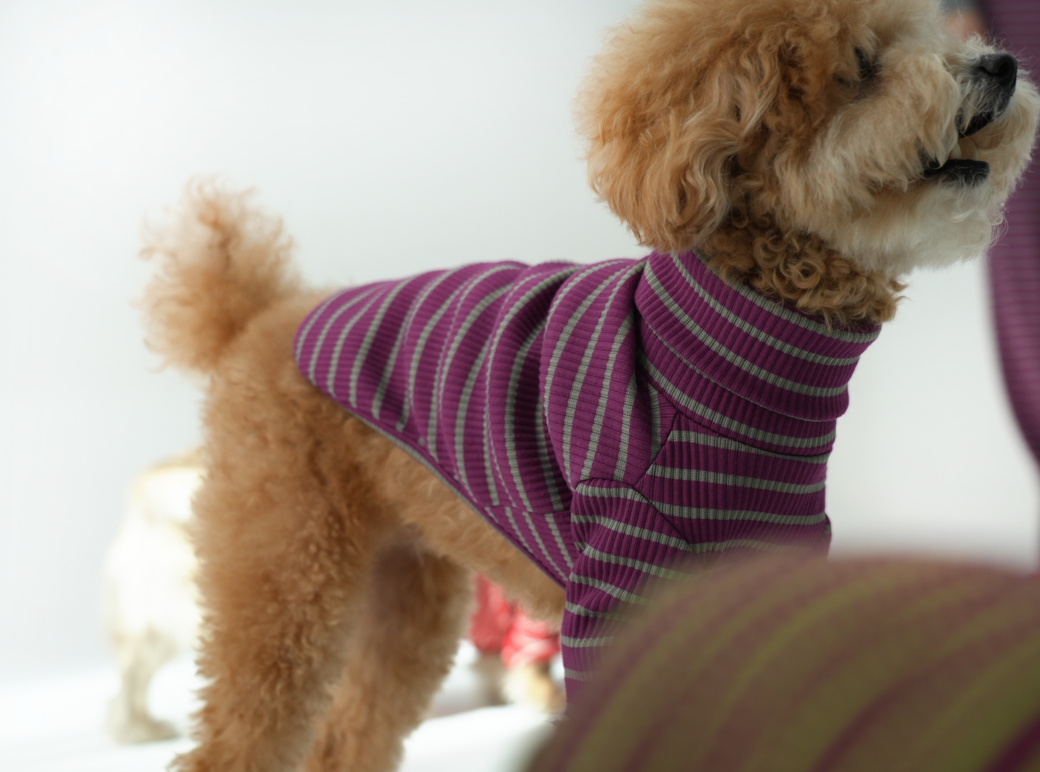 上品なストライプ柄が魅力のタートルネック。柔らかな素材で愛犬を優しく包み、秋冬の防寒にも◎。シンプルながら洗練されたデザインで、どんなお出かけコーデにも合わせやすい一枚。