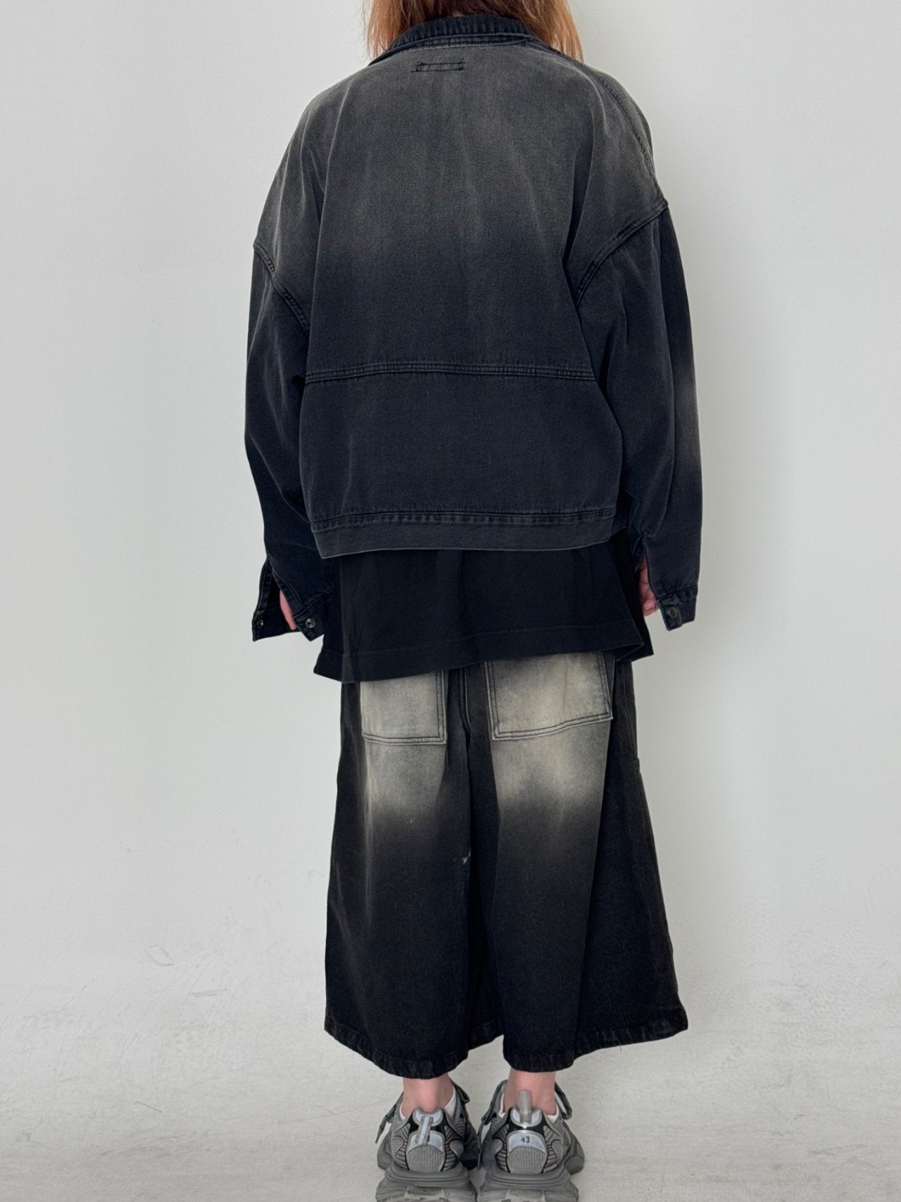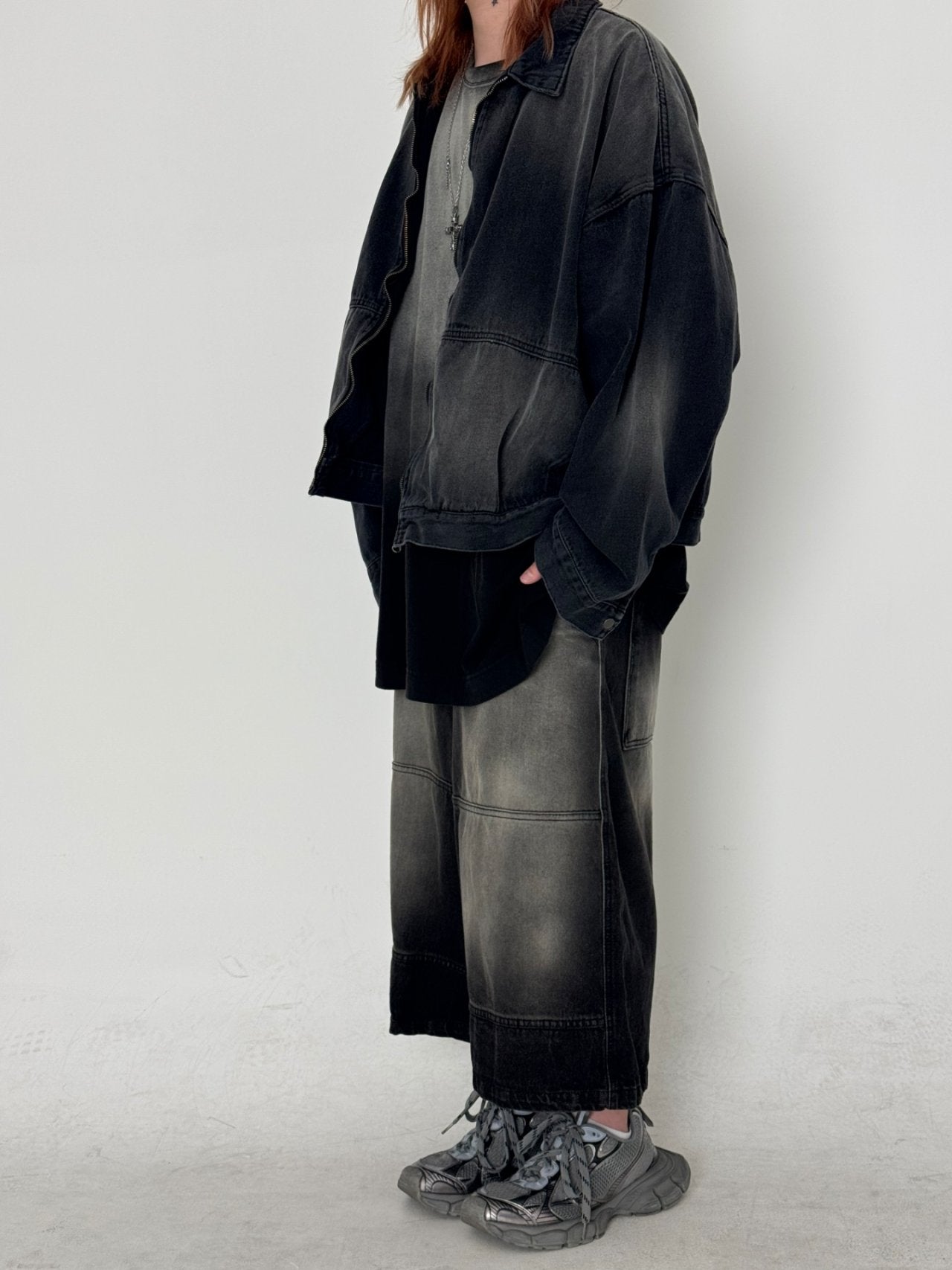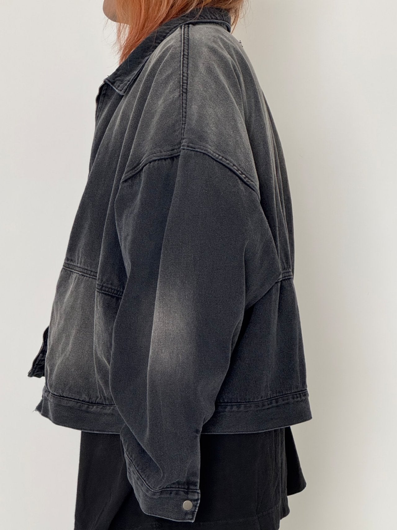 くすんだブラックと自然な色落ち感が特徴のデニムトラッカージャケット。