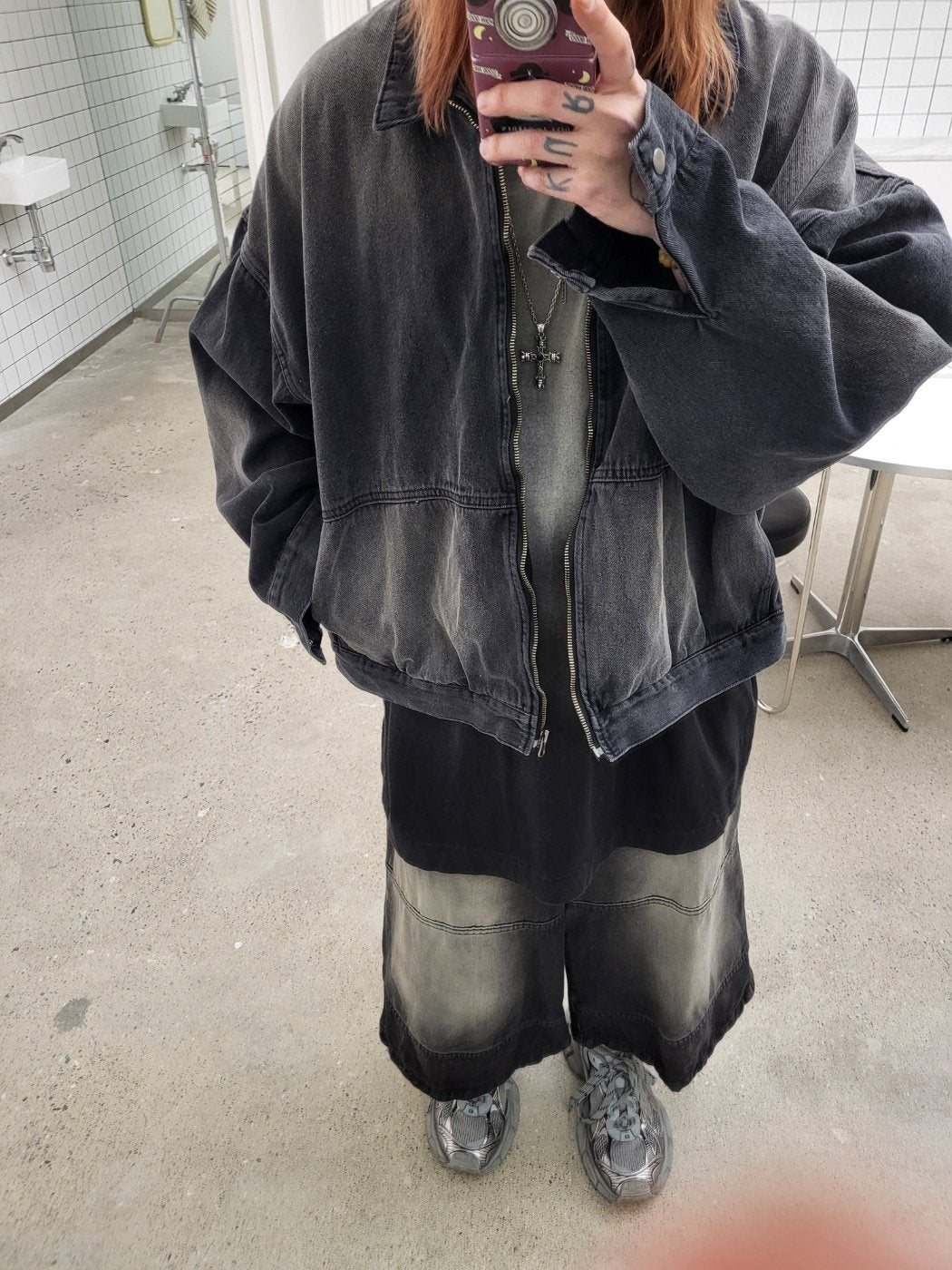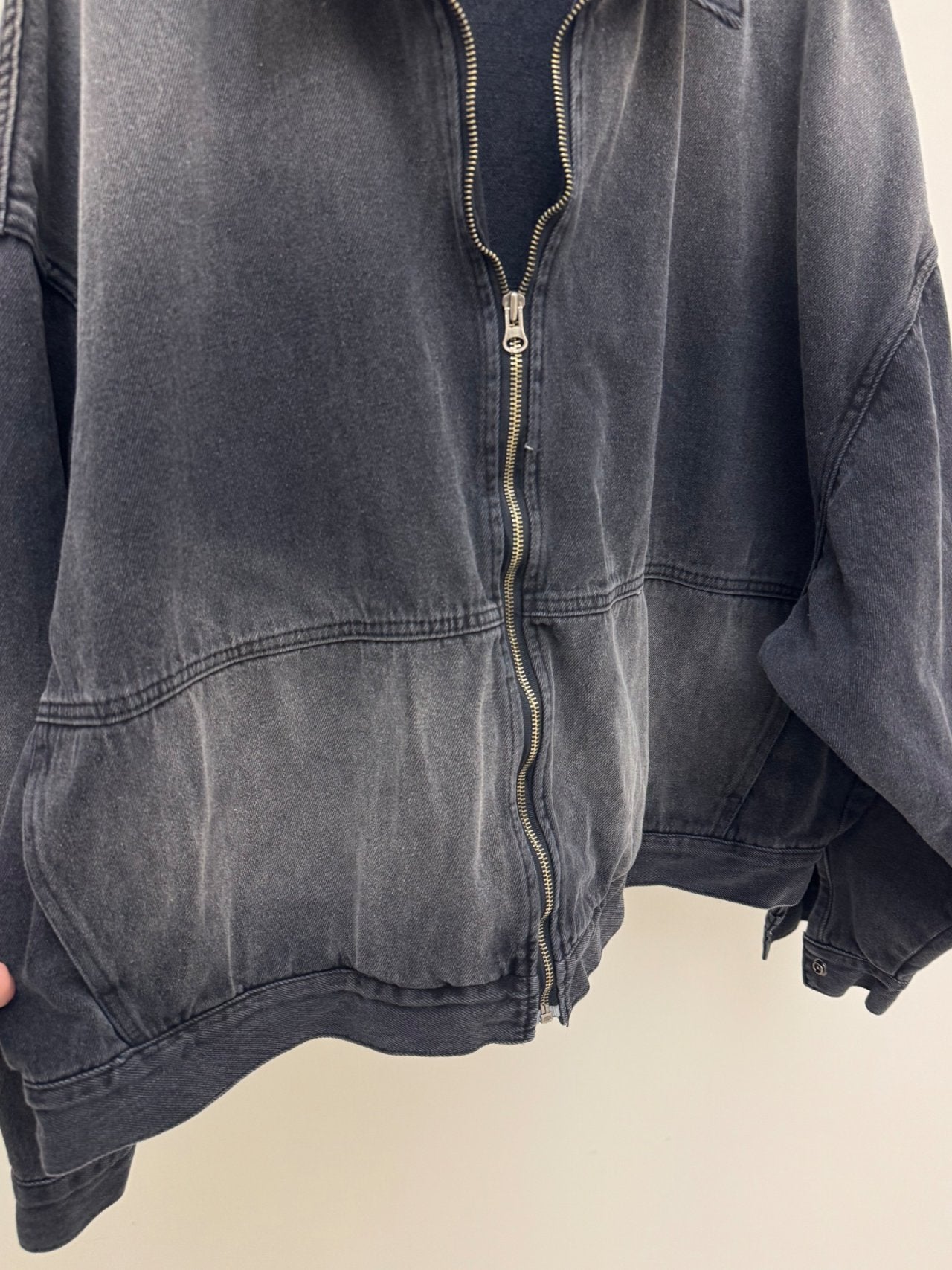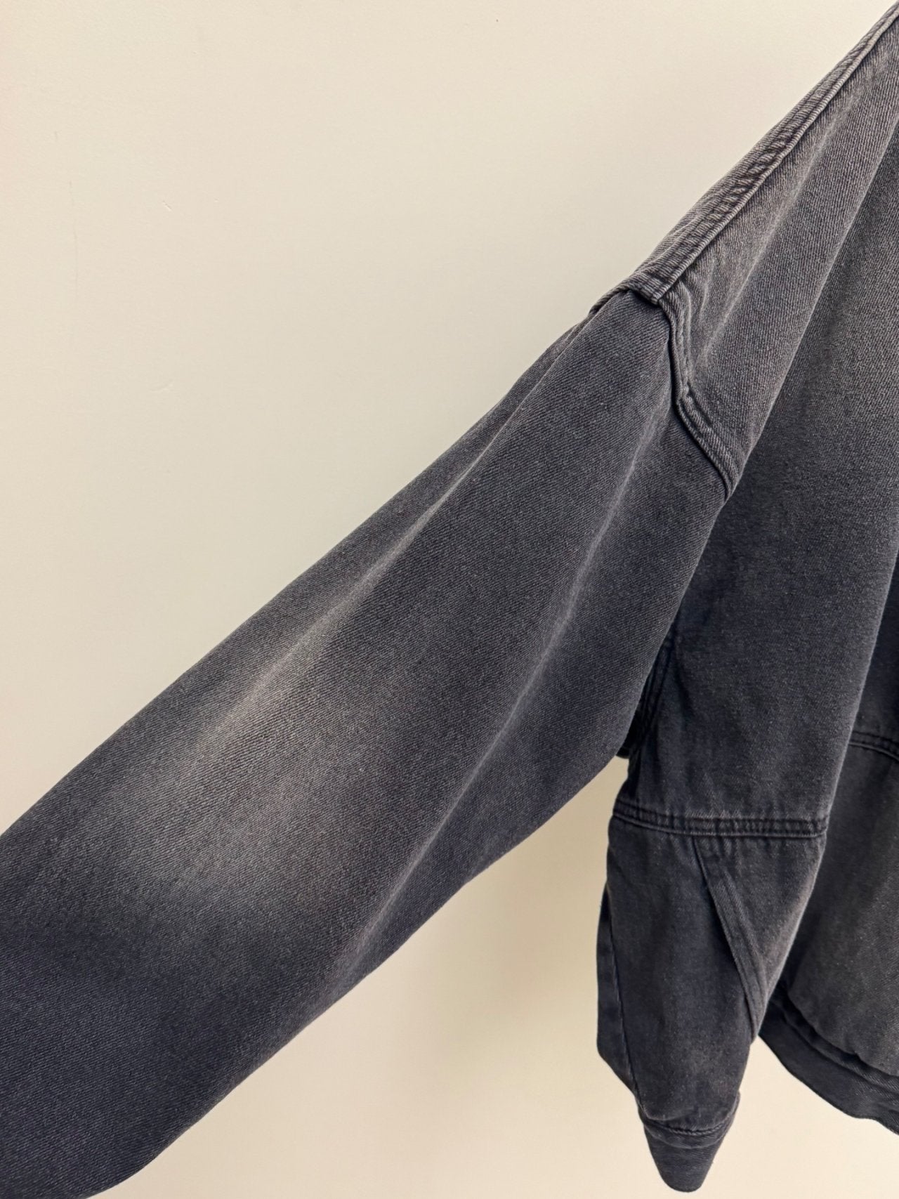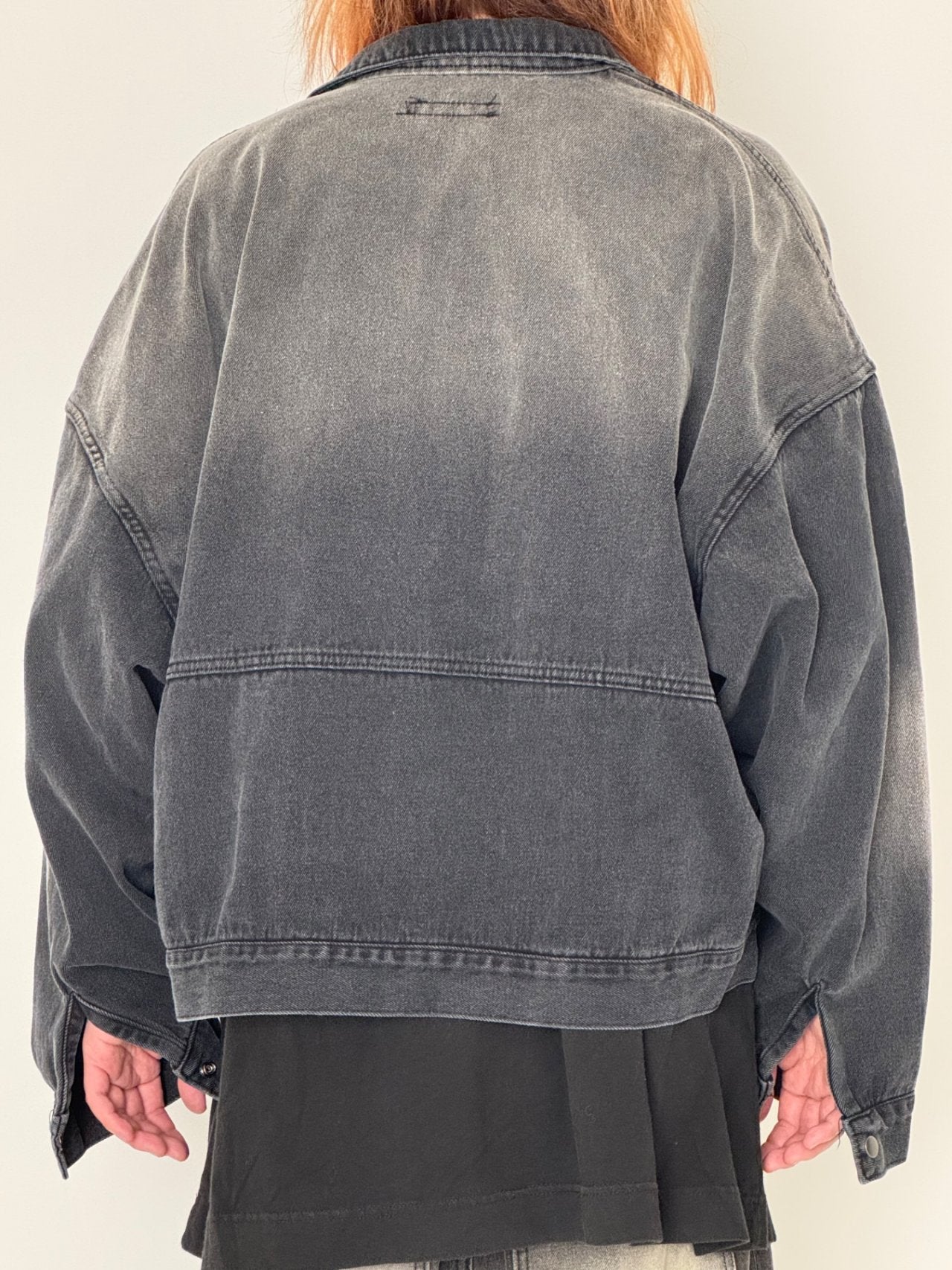 くすんだブラックと自然な色落ち感が特徴のデニムトラッカージャケット。
