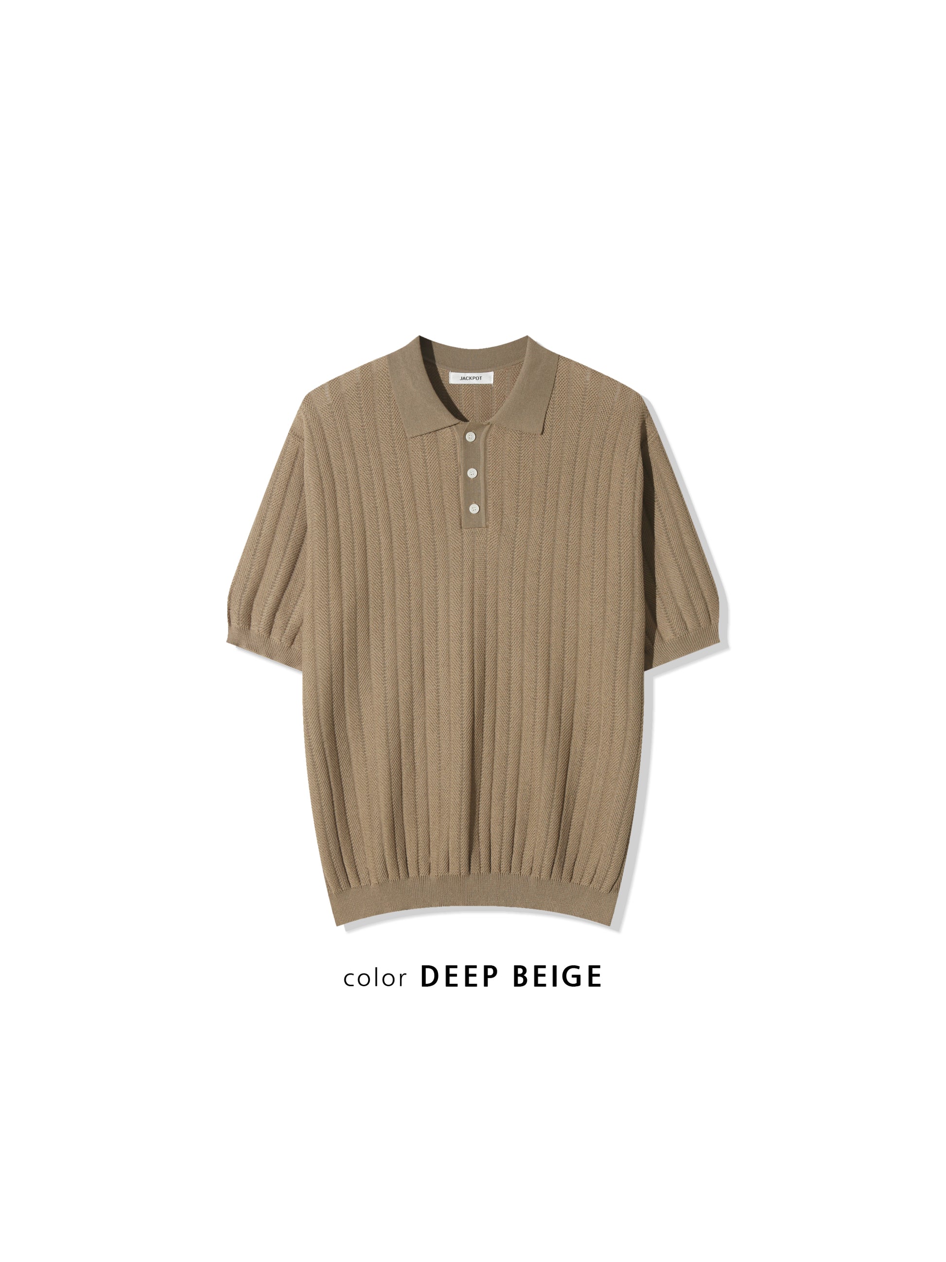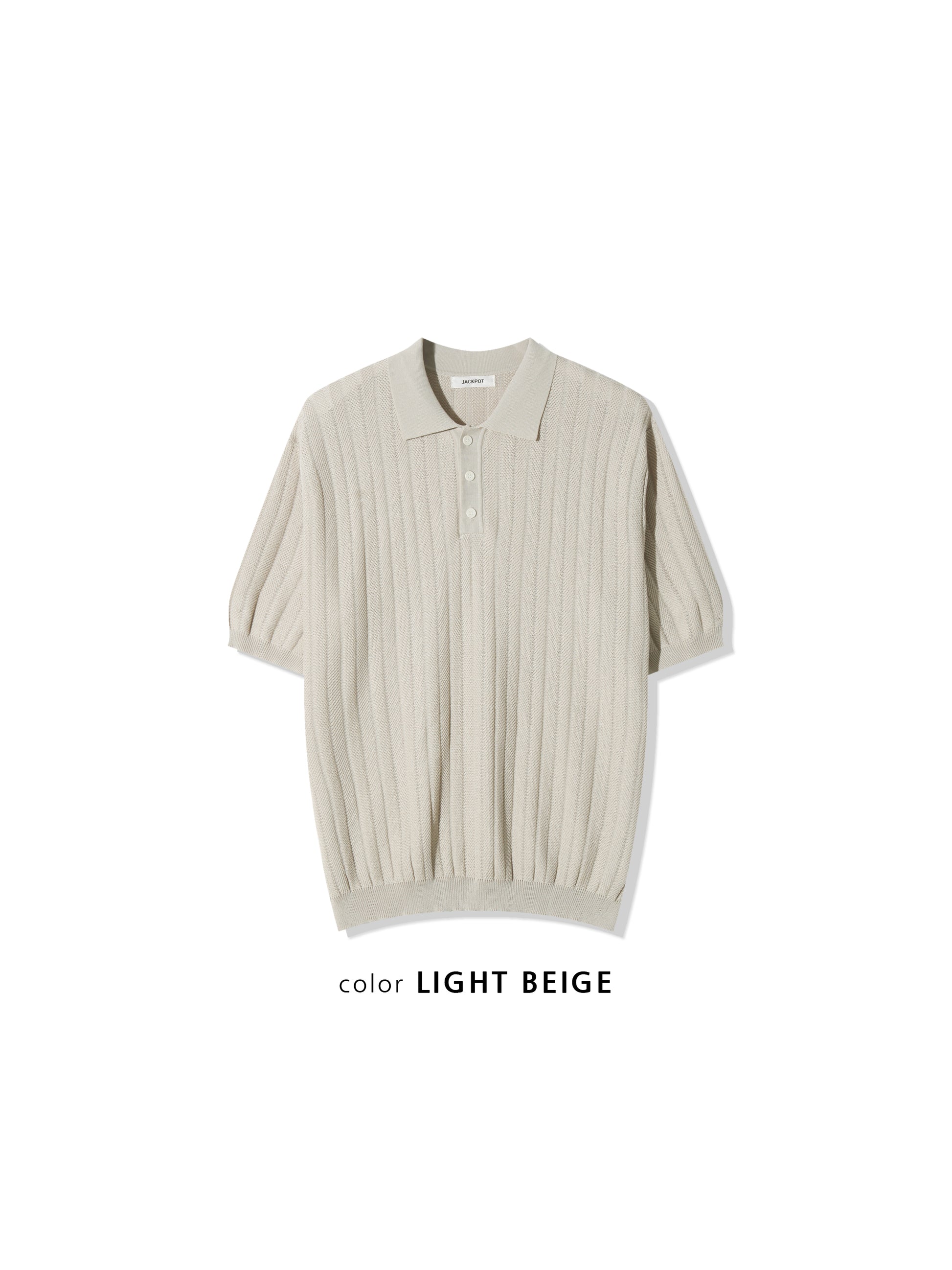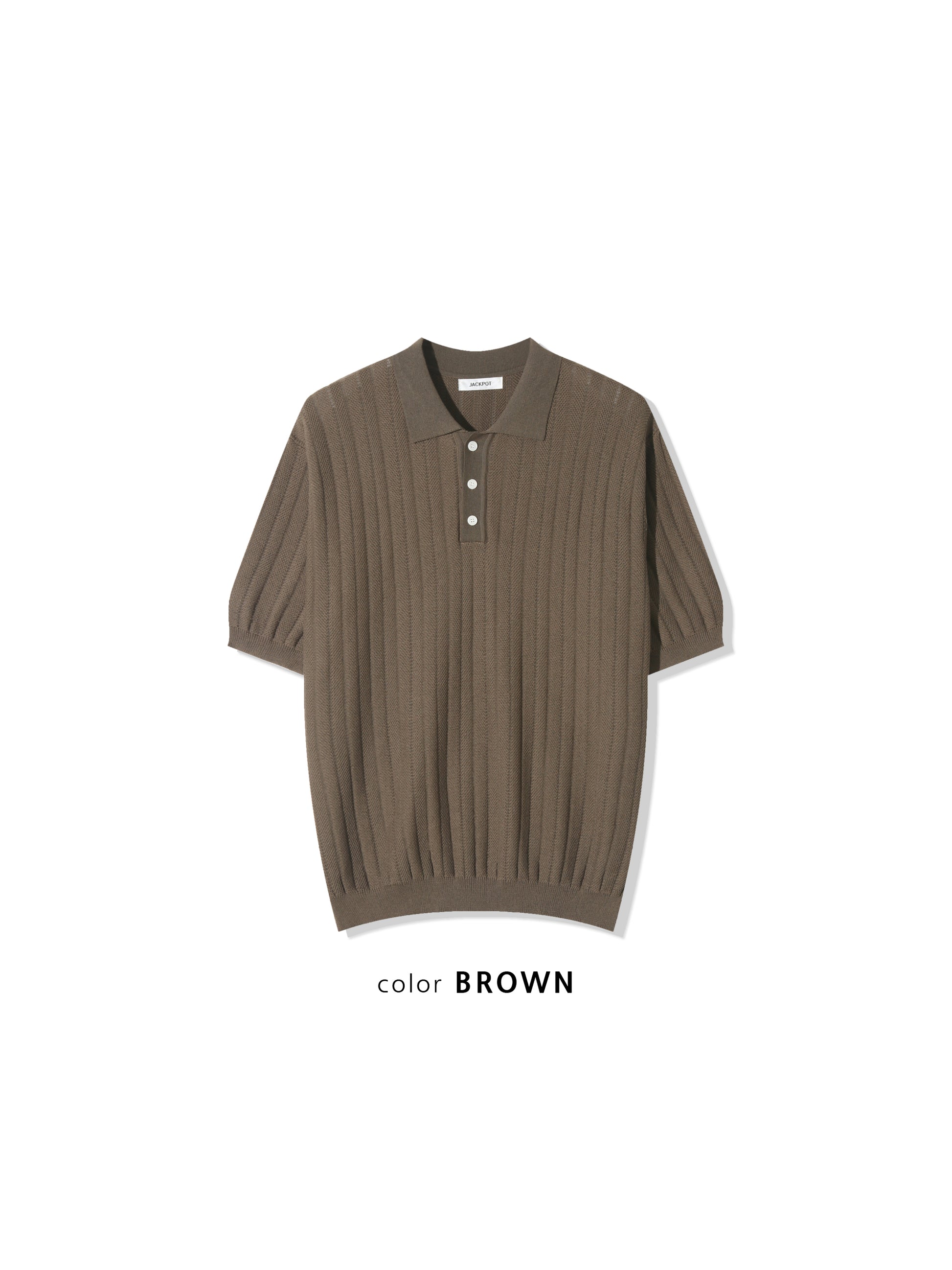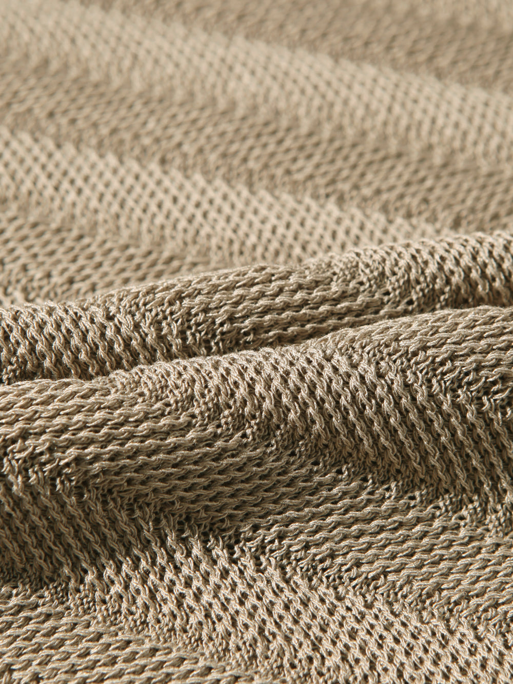 軽やかで立体感のある編地が特徴のニットポロ。空気を含むような柔らかなコットン100%素材で、素肌に着ても快適。夏の主役になる清涼感ある質感に、落ち着いたカラーパレットが調和。1枚でもレイヤードでも活躍する、万能なアイテムです。