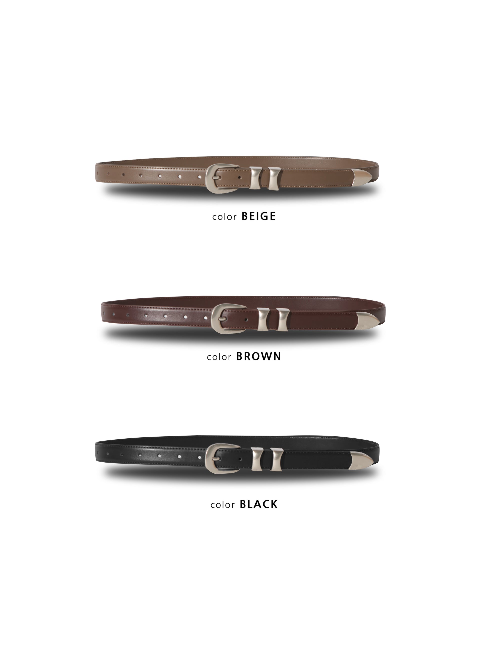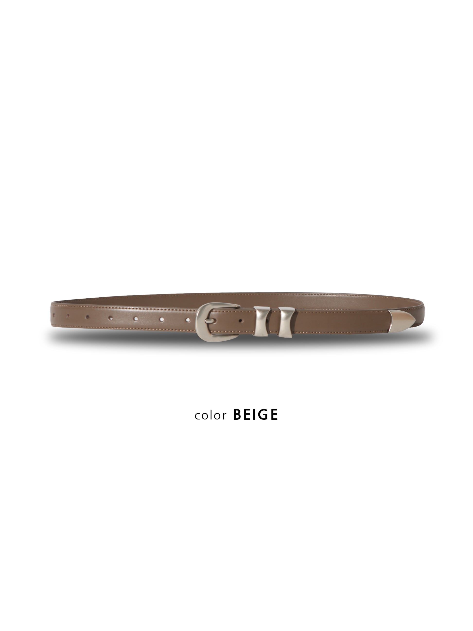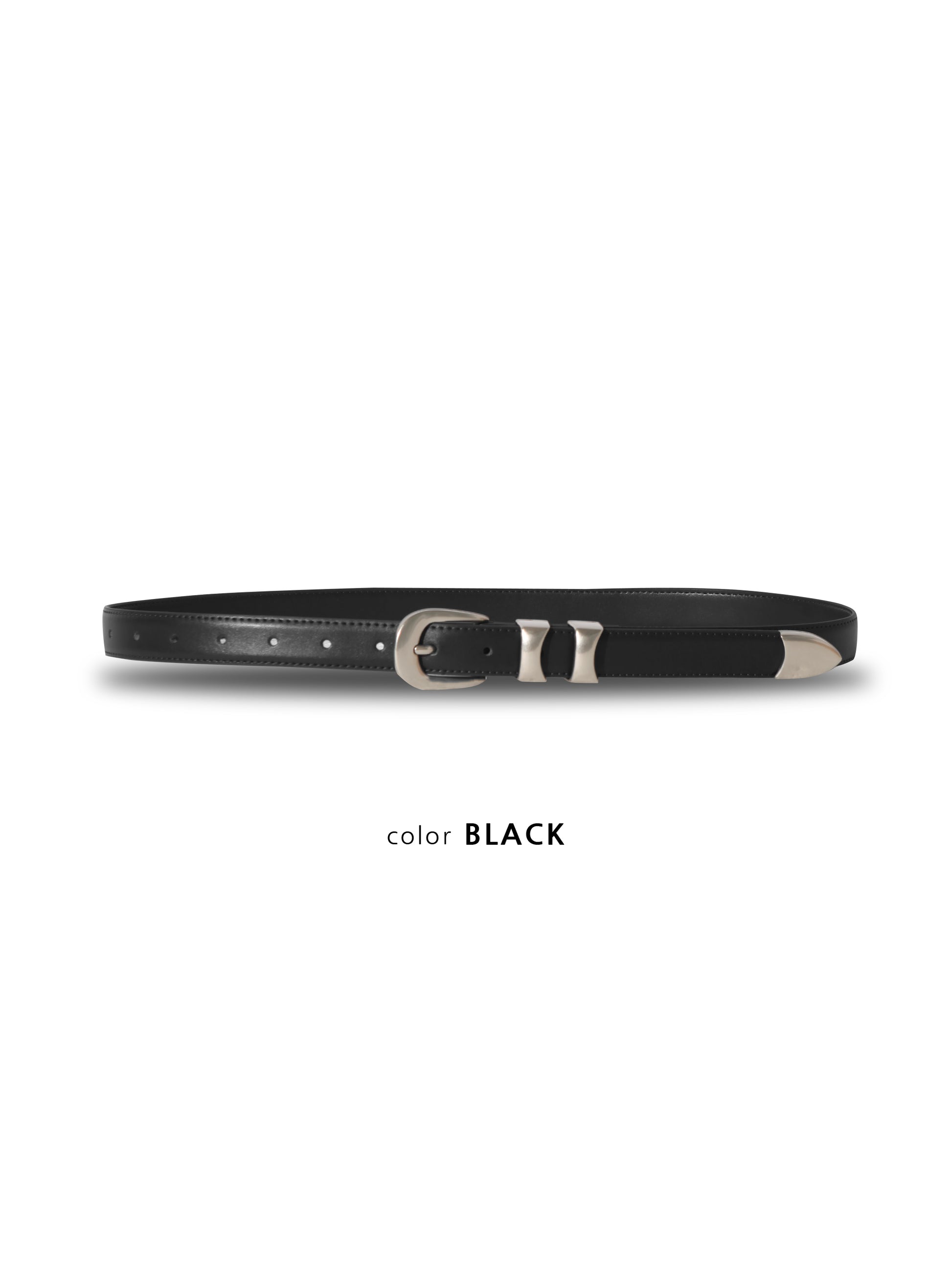 端正なバックルと細身のシルエットが、装いをすっきり引き締めるレザーベルト。