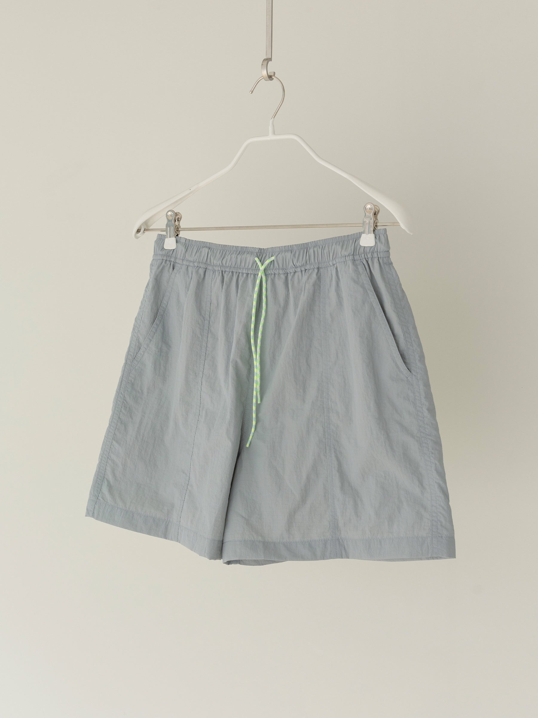 軽量で通気性の高いリップストップナイロン素材を使用した、夏にぴったりのショートパンツ。裏地にはメッシュを採用し、汗ばむ季節でも快適な着用感をキープ。ウエストにはネオンカラーのストリングが施され、スポーティかつ洗練されたアクセントを添えます。洗濯による縮みや型崩れを抑えるワッシング加工済み。