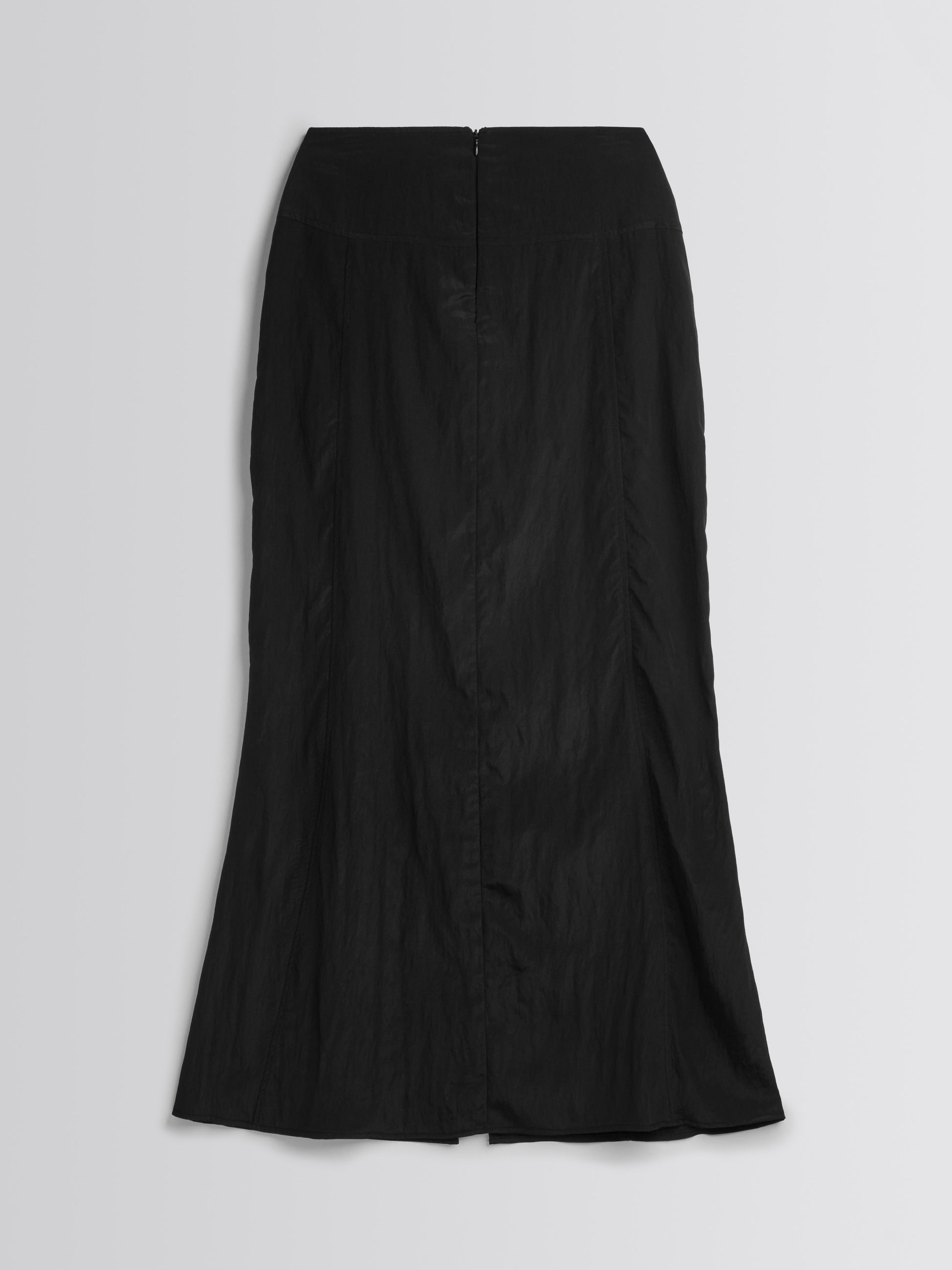 繊細な光沢と軽やかな素材感が魅力の、ブリーズスリットミディスカート。