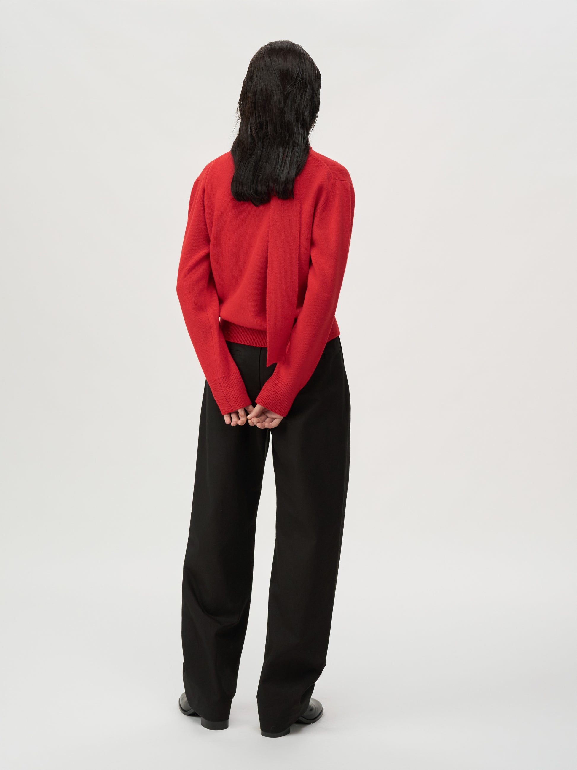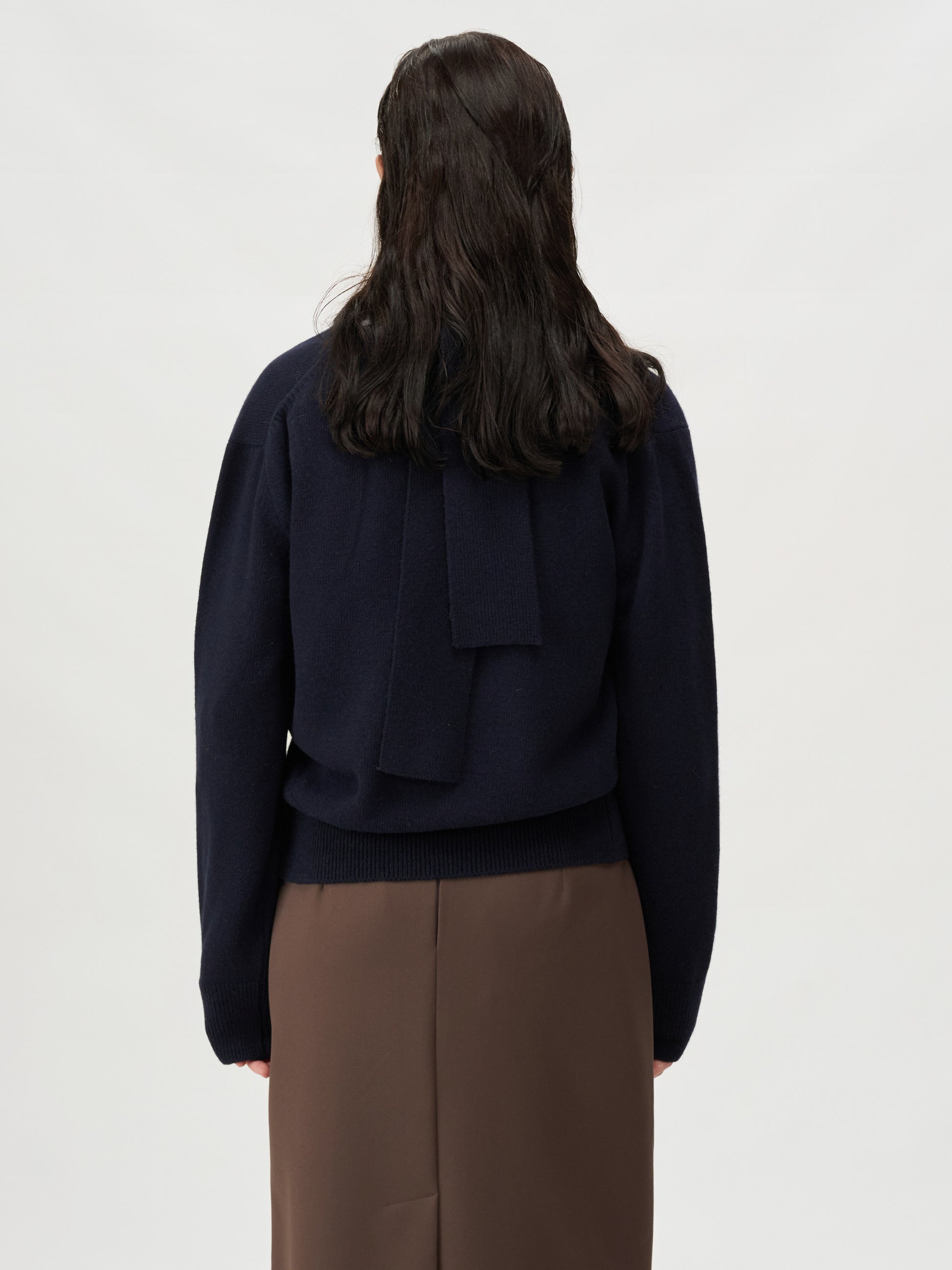 本体と同素材のマフラーが付属しており、首元はもちろん、前開き・ウエスト巻き・肩掛けなど幅広いアレンジが可能です。