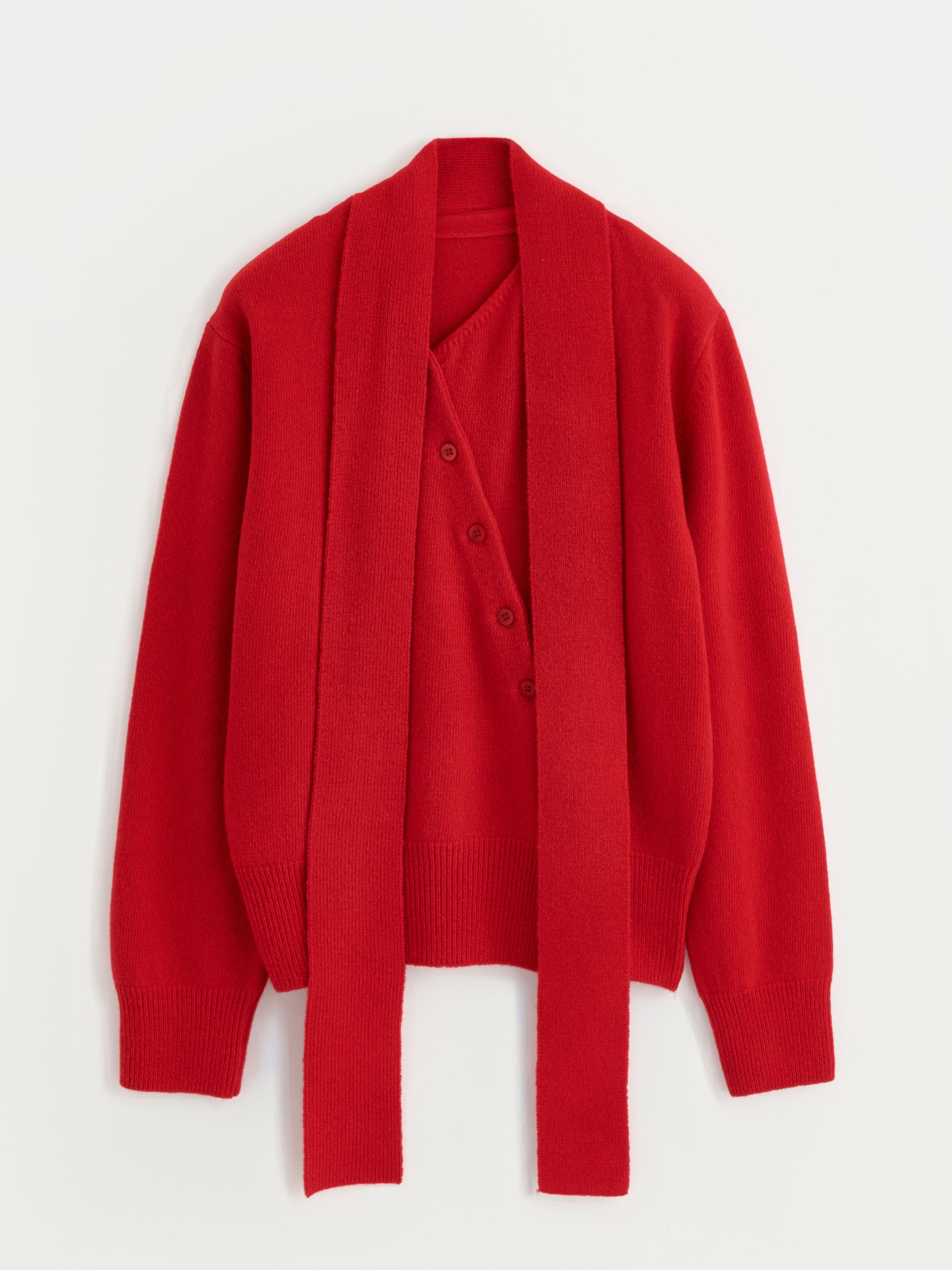暖かさとスタイルを両立した、MAGJAYのウール100%カーディガン&マフラーセット。