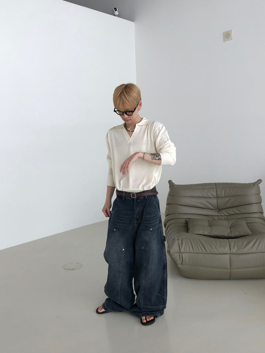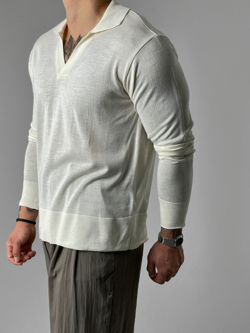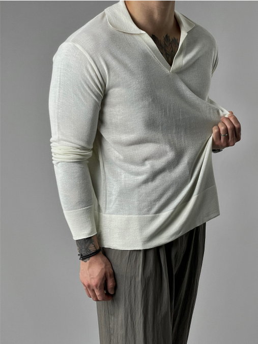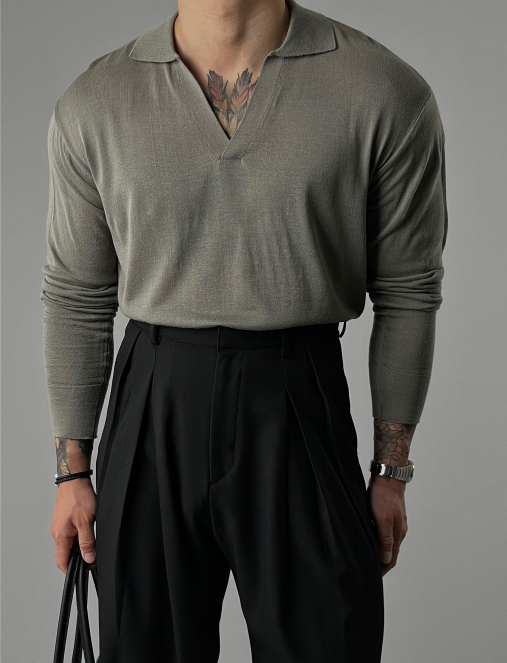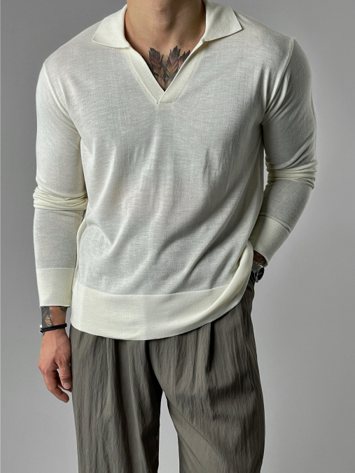 さらりとした肌触りと軽やかな生地感が特徴の「Open Collar Knit Pullover」。