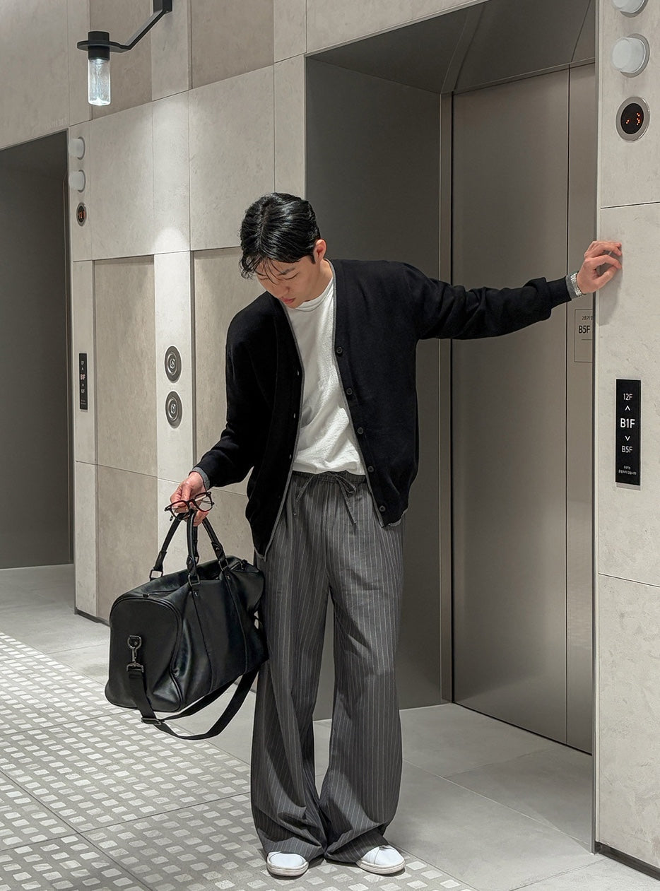 - 白T&カーディガンでミニマルに。ローテクスニーカーで抜け感を。