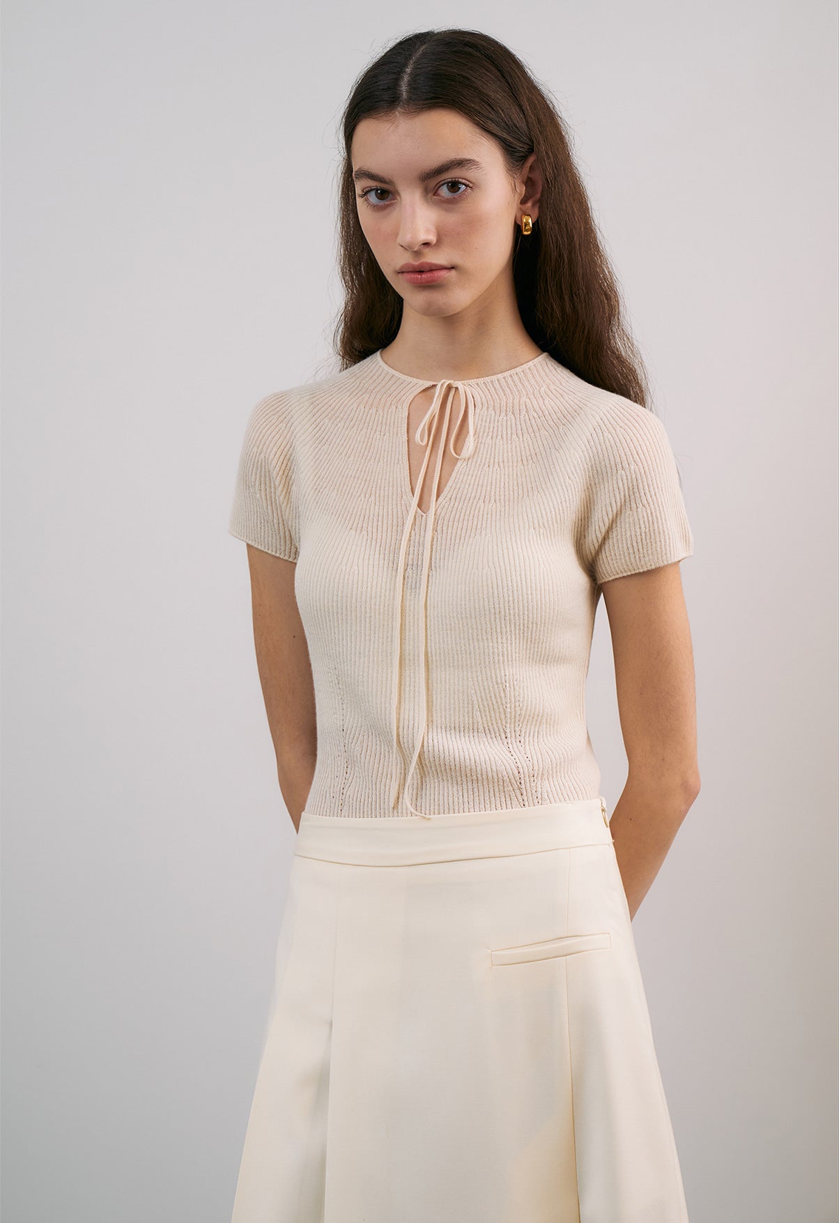 ・日常使いにぴったりな、ベーシックかつスリムなデザインのニットTシャツ。