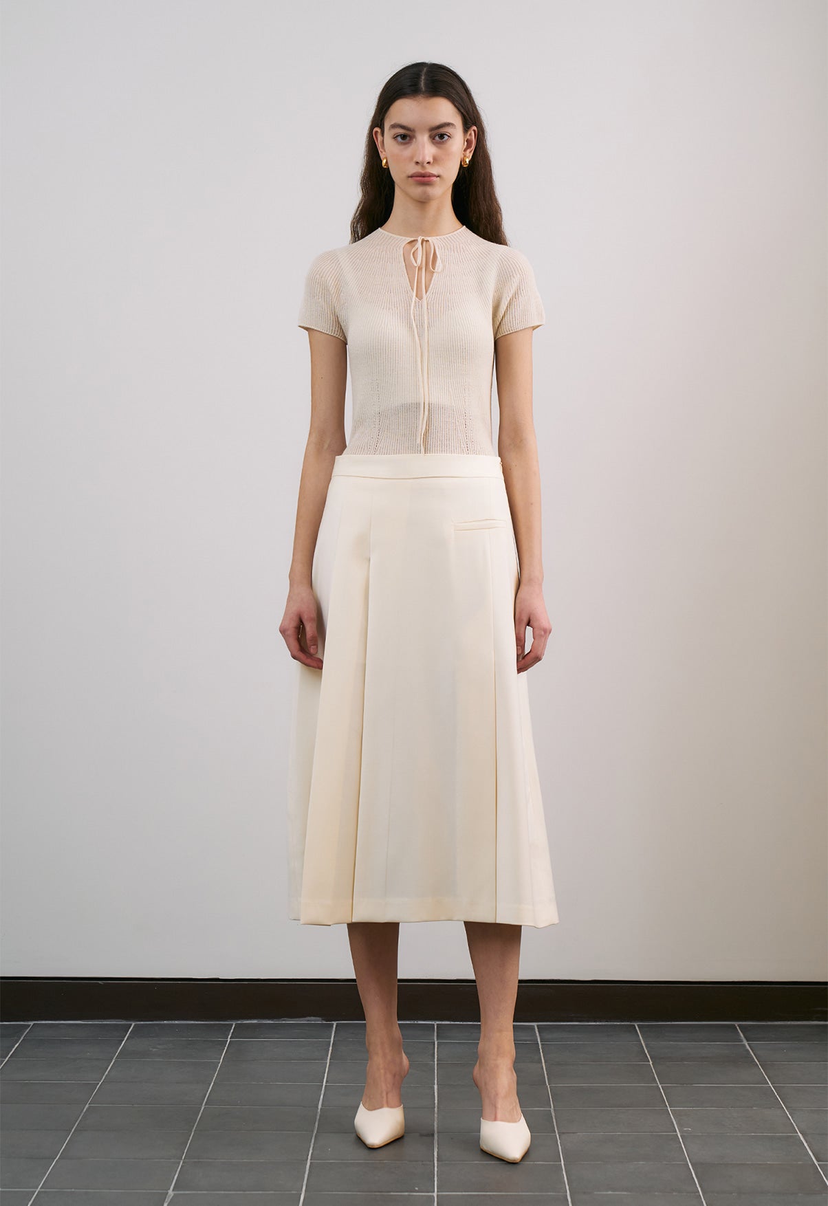 ・背中のリボンディテールが、フェミニンさとポイントをプラス。