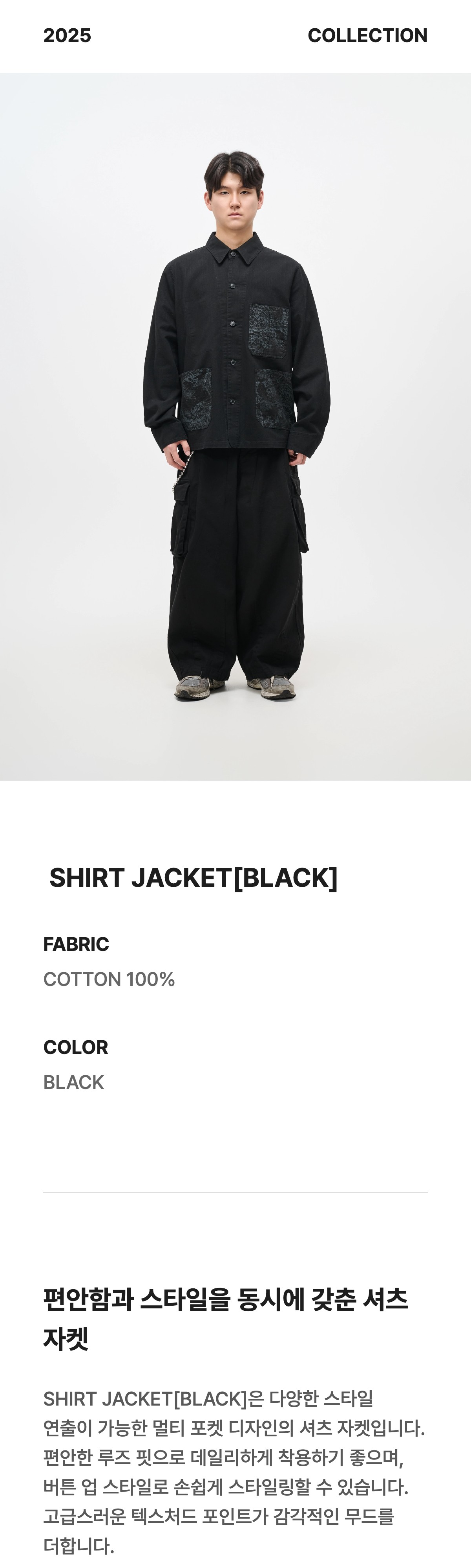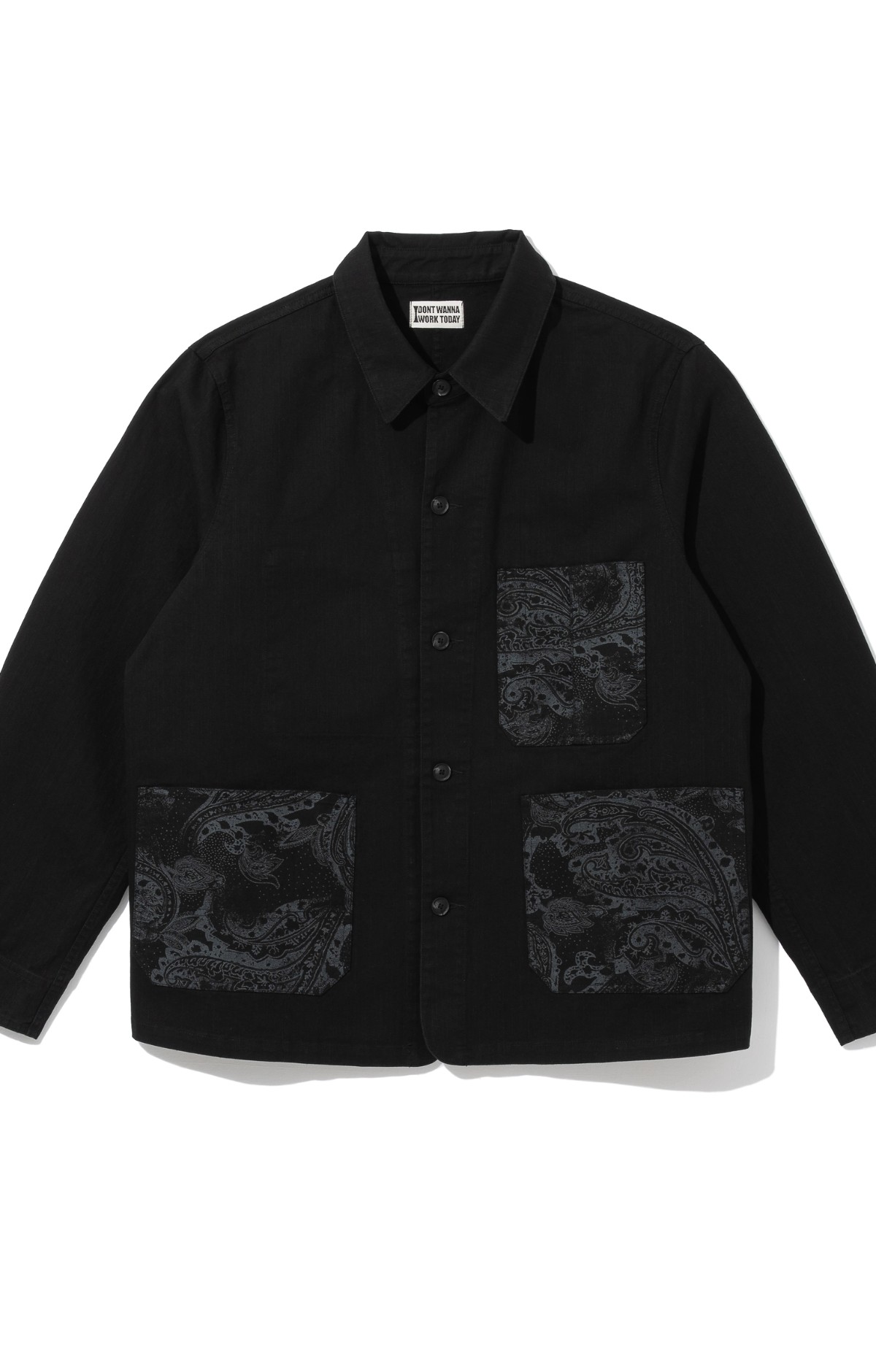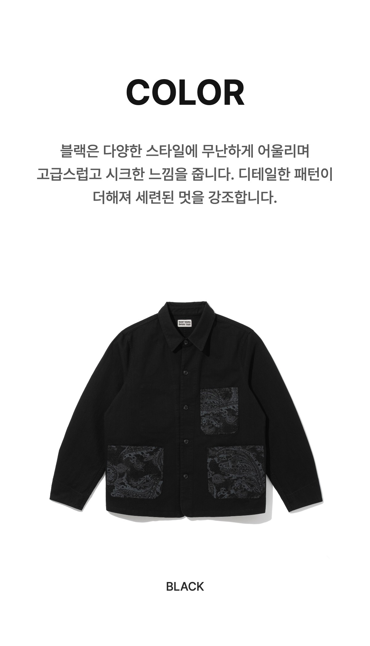 シンプルでありながら、個性を放つ「SHIR JACKET」。オールブラックのボディに、さりげなく存在感を示すペイズリーパターンポケットがアクセント。上質なコットン素材を使用し、程よいハリ感と柔らかさを兼ね備えた一枚です。フロントボタン仕様で着脱がしやすく、羽織りとしてもシャツとしても活躍。ルーズシルエットがリラックス感を演出し、ストリートからカジュアルまで幅広いスタイリングにマッチします。