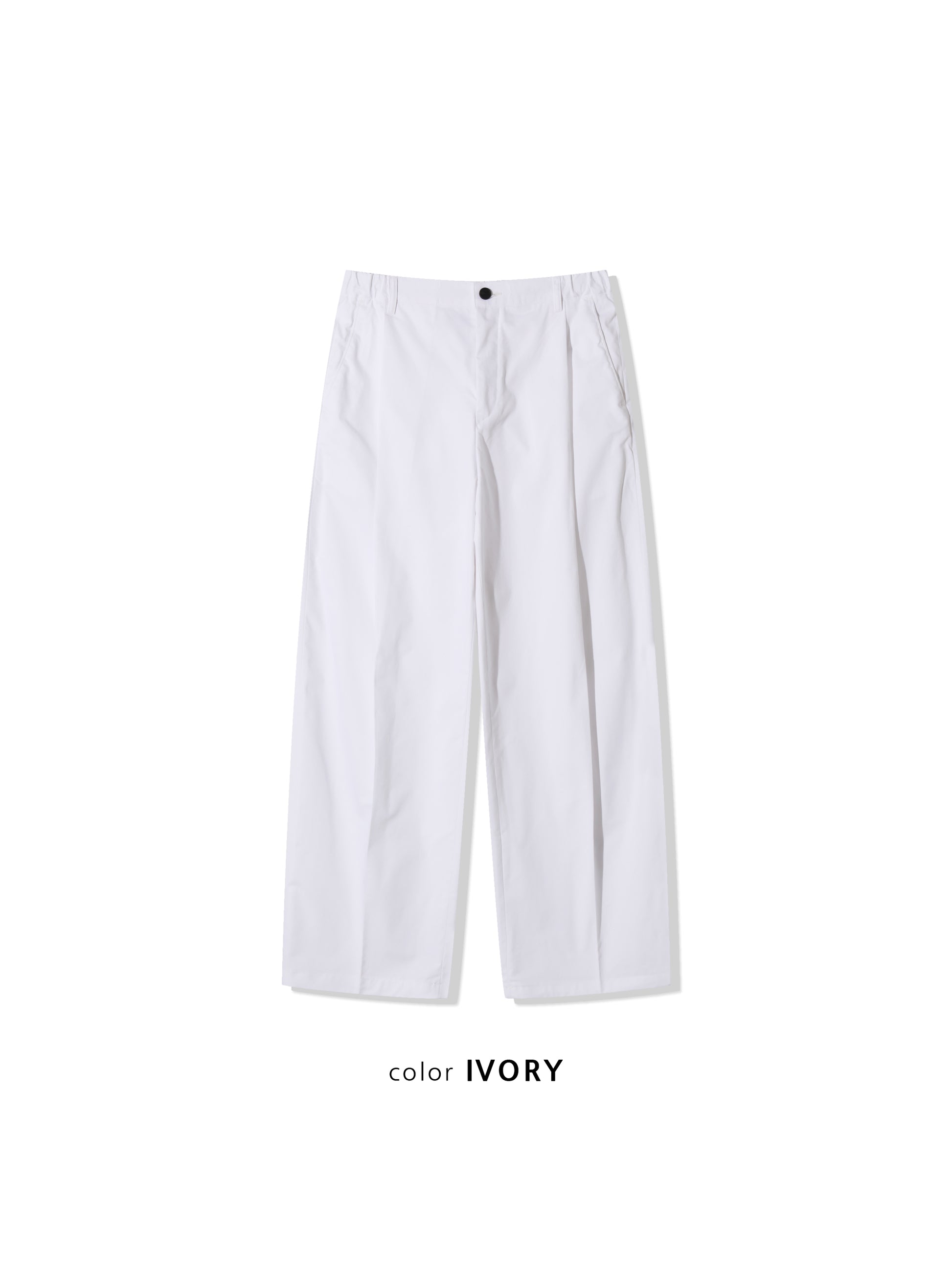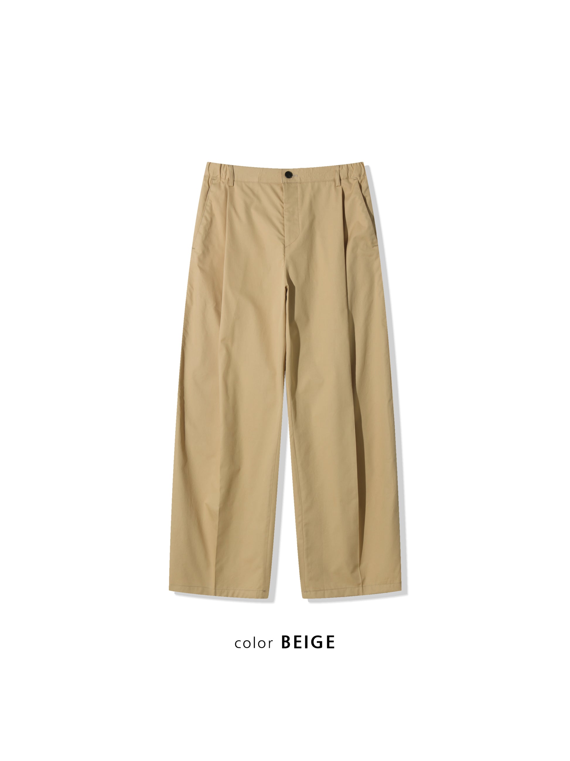 リラックス感のあるシルエットが魅力的なサマー ワイド タック バンディング パンツ。ウエストにタックを施し、ゆったりとしたボリューム感を演出。綿100%の軽やかな生地で、蒸し暑い季節にも快適な着心地を提供します。