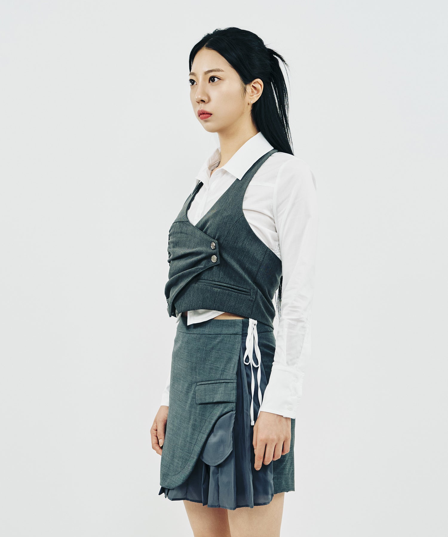 背面にかけて施されたアンバランスなシャーリングが、立体的な陰影を演出するモダンなデザイン。